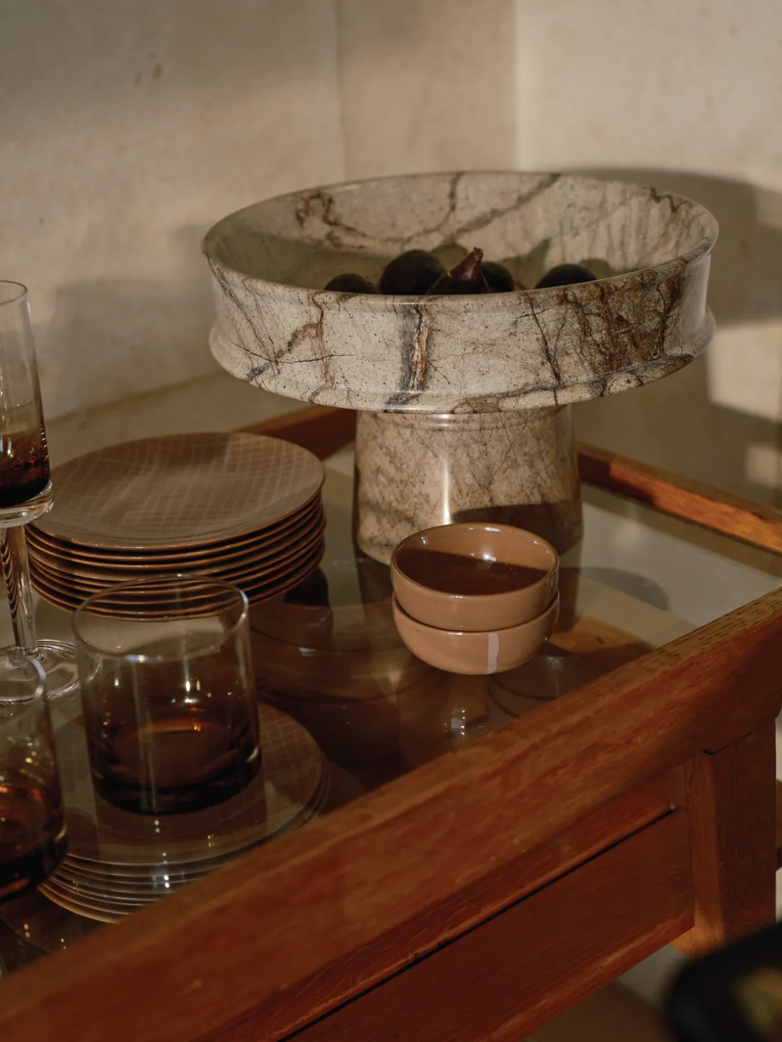 La diseñadora de interiores Kelly Wearstler siente una pasión especial por el mármol. Describe los accesorios de mármol de la colección DUNE como un homenaje a «las suaves ondas de la arena a la deriva, capturadas en finas vetas y cálidos tonos terrosos». Con su elegante presencia, estas piezas únicas se convertirán sin duda en el centro indiscutible de cualquier mesa.