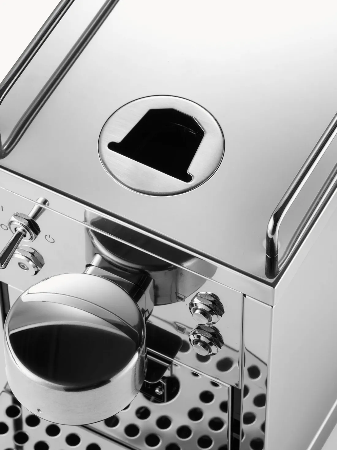 Tener la palanca de entrada de cápsulas en posición vertical. Empujarla un poco más hacia atrás. Mantenerla empujada hacia atrás mientras se hace.