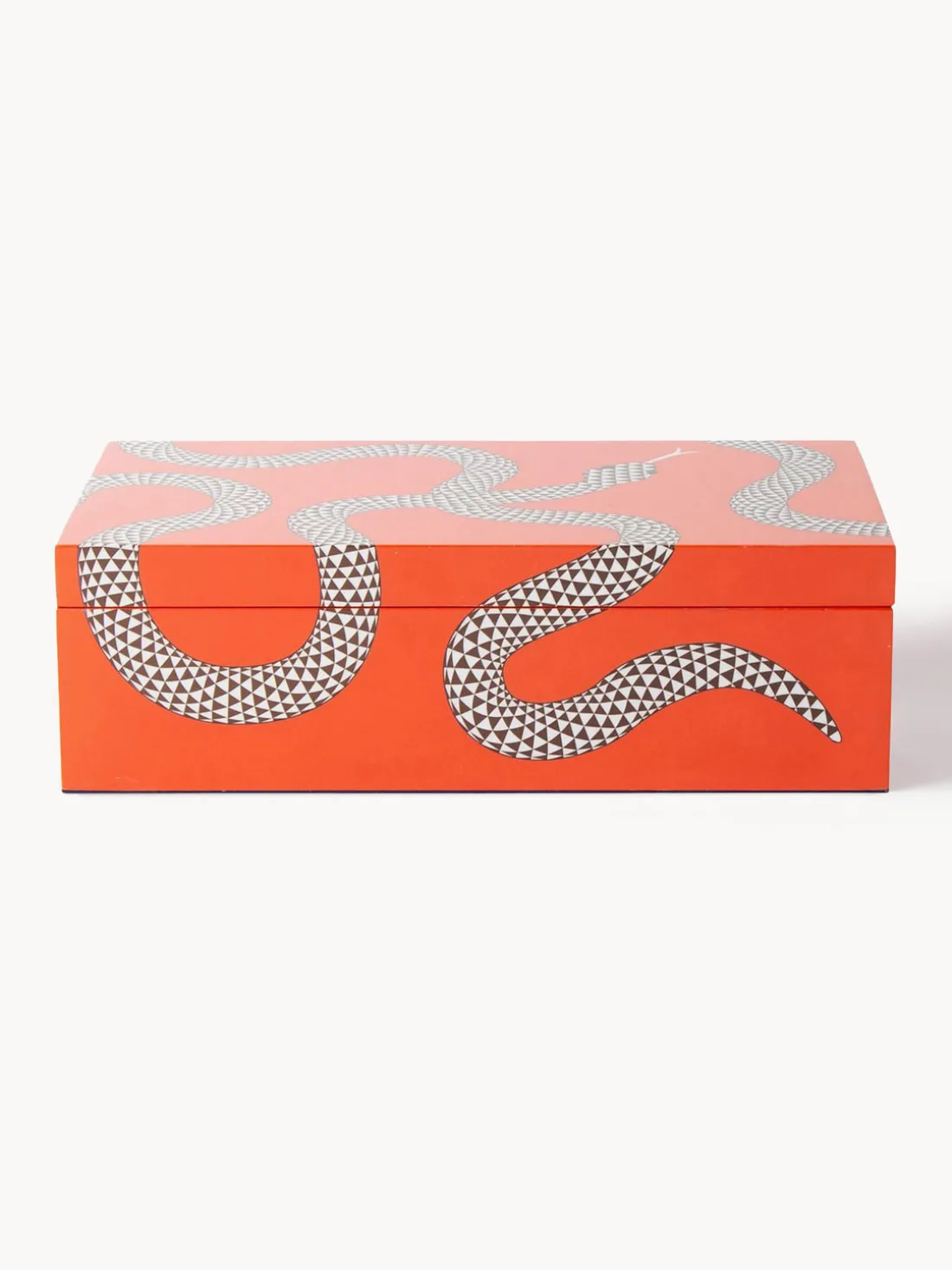 Con elegantes serpientes sobre un fondo brillante, las cajas de almacenaje Eden, hechas a mano, son un complemento elegante y encantador para una estantería, una cómoda o una mesa. Disponibles en tres tamaños para almacenar, apilar o como pieza única.