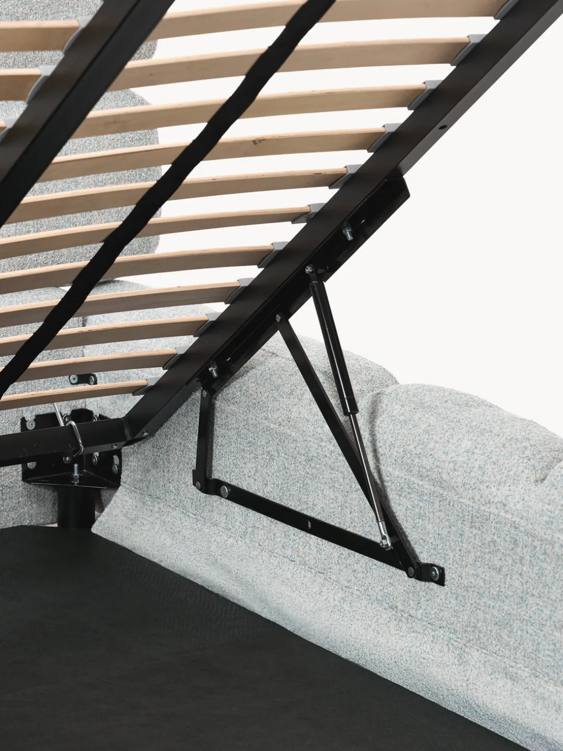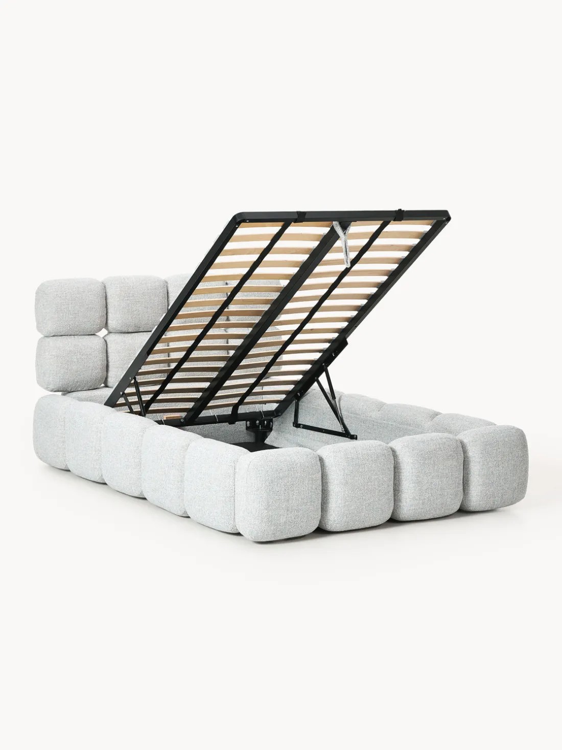 Cama tapizada con espacio de almacenamiento.
