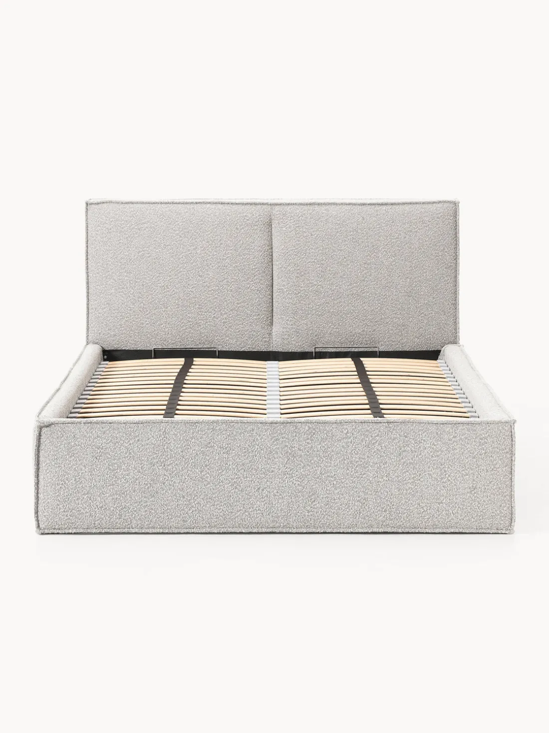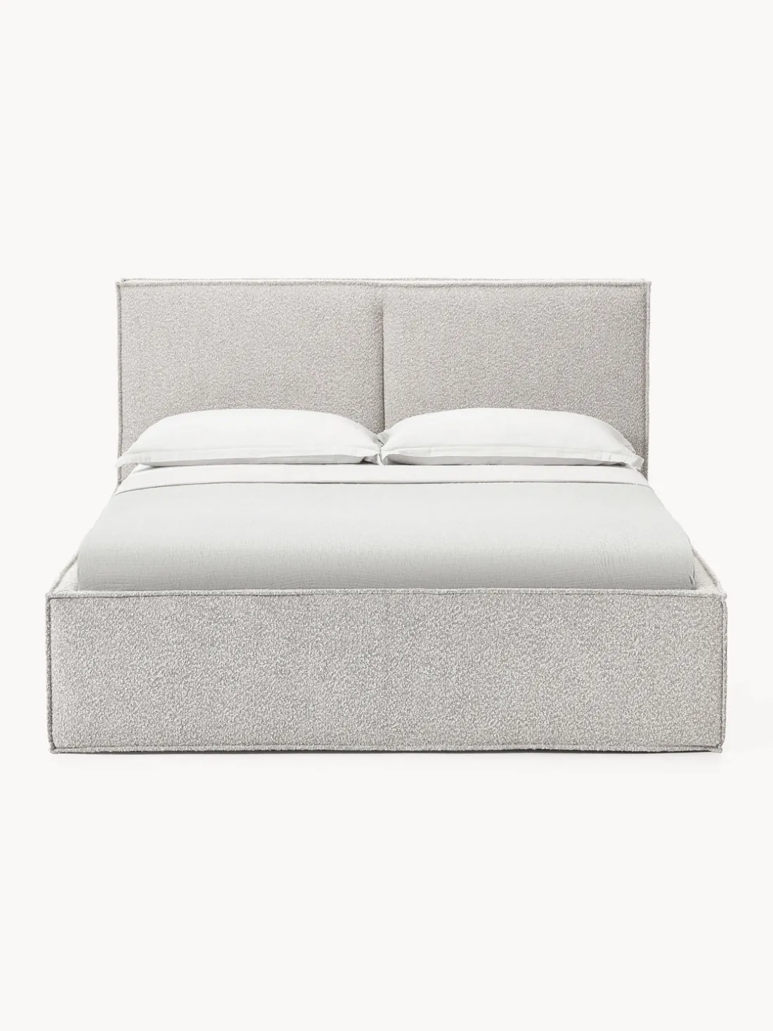 Cama tapizada con espacio de almacenamiento.