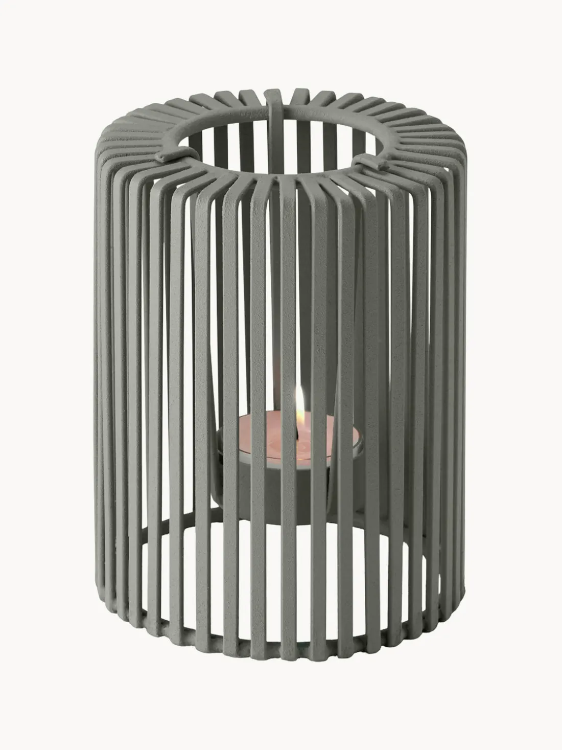 En lugar de descansar bajo un cilindro de cristal, las velas se colocan libremente sobre una base de acero perfectamente ajustada. El bonito y uniforme envoltorio de malla de acero también está recubierto de polvo y ofrece una protección adicional gracias al ancho de las bandas.