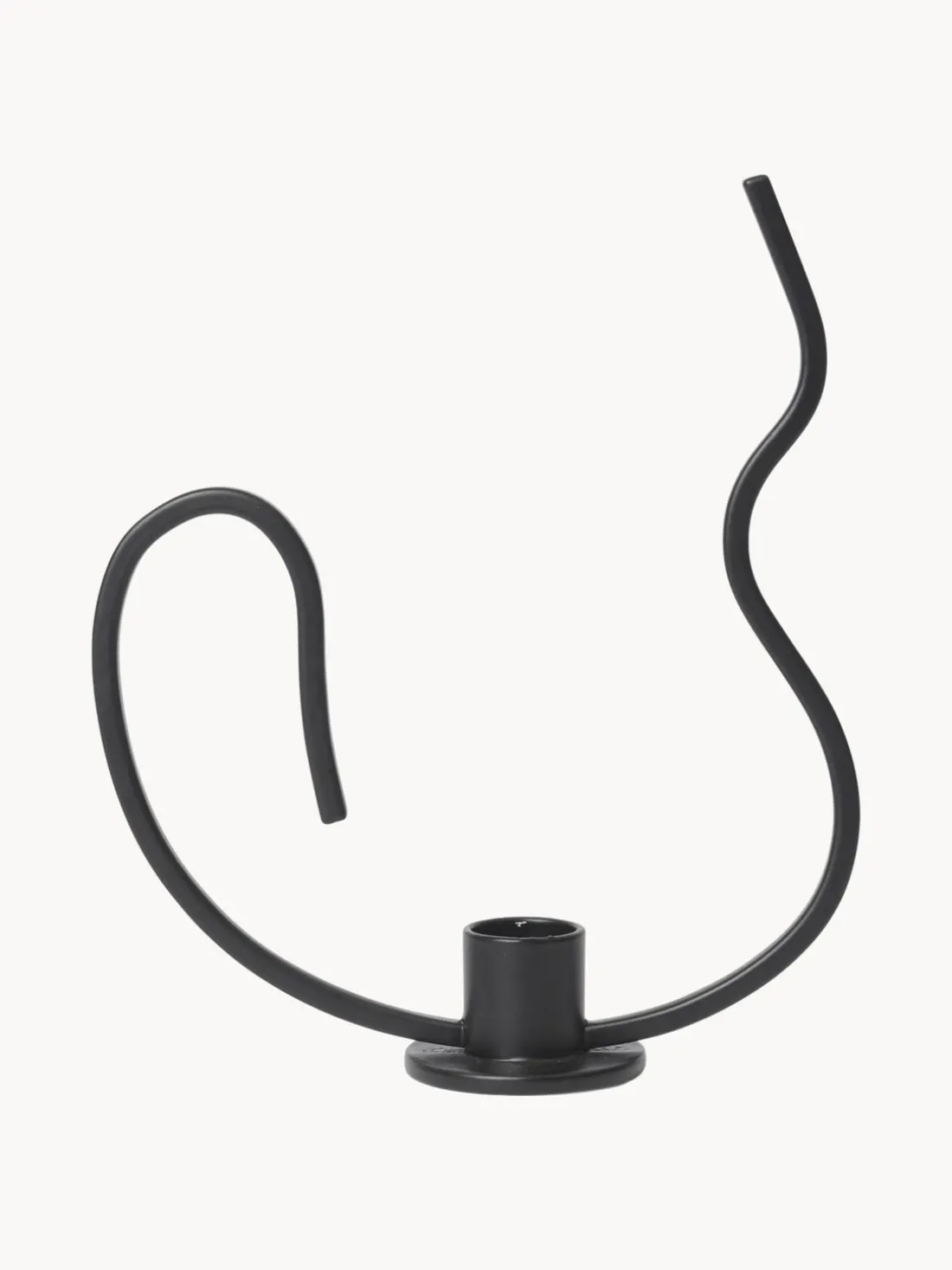 El candelabro Valse tiene una forma fluida y ondulante, como si se hubiera solidificado bailando. Fabricado en hierro con recubrimiento en polvo, esta pieza se inspira en los gráciles movimientos del baile del vals y presenta una forma elegante con una varilla metálica curvada.