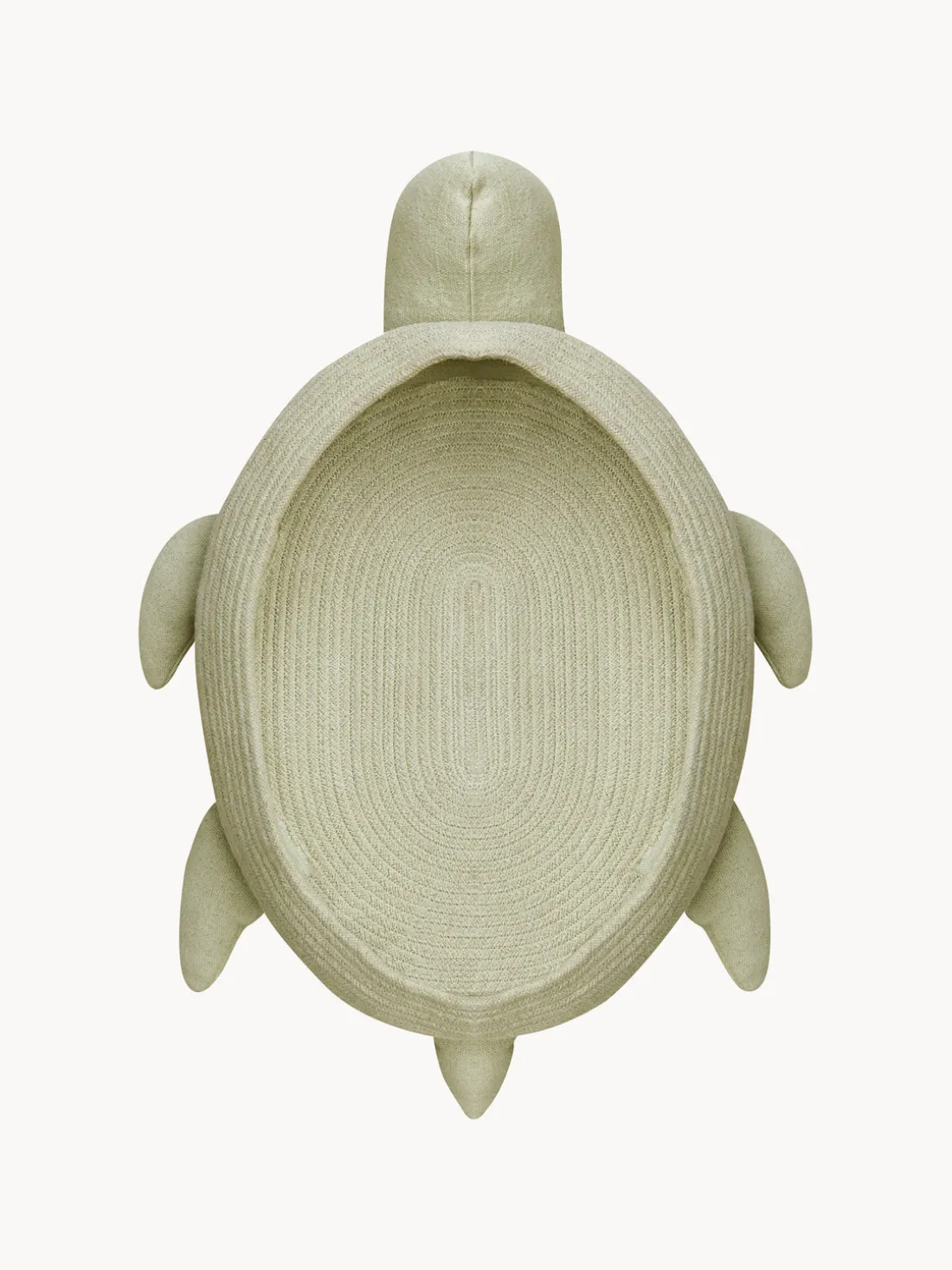 Con forma de tortuga marina, la cesta MAMA TURTLE está hecha a mano con cuerdas trenzadas de fibras de botellas de plástico PET recicladas mezcladas con algodón.