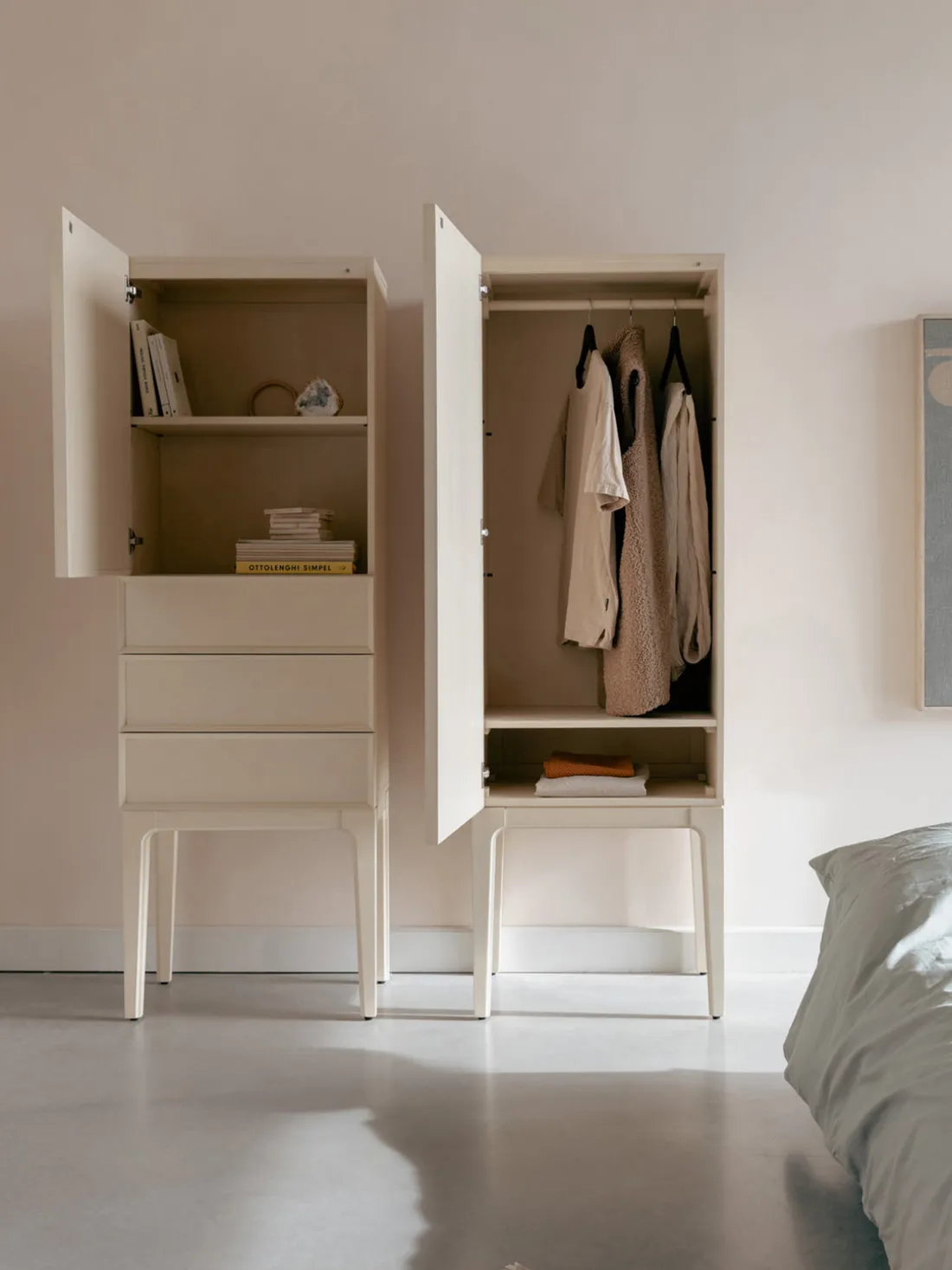 El aparador tiene cuatro compartimentos.