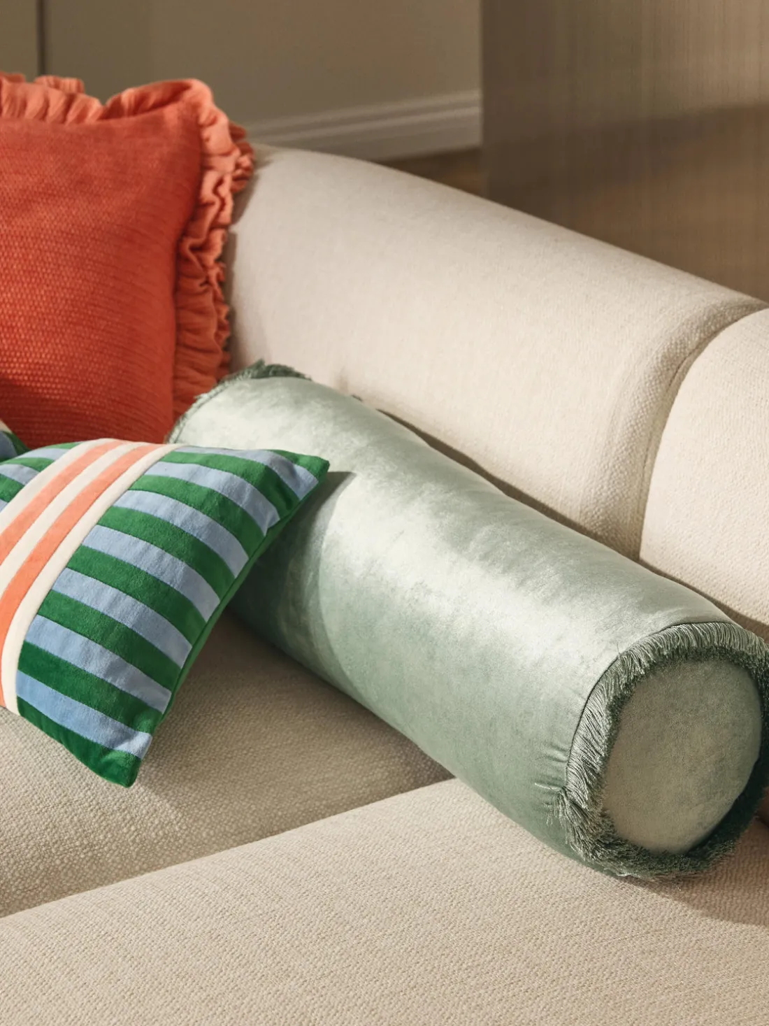 Cojín rulo co flecos Nikita
