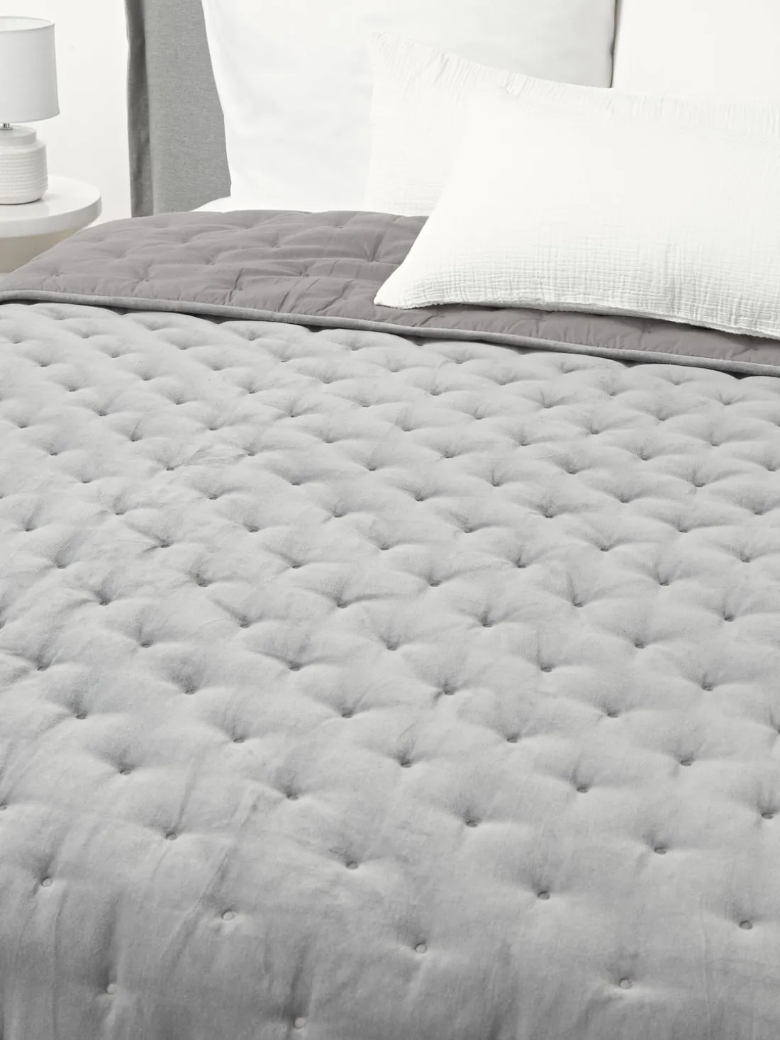Las colchas nunca deben comprarse demasiado pequeñas. Deben ser al menos iguales a la longitud y el ancho de la cama más unos 20 cm pora cada lado. Como resultado, cubren toda la cama y alcanzan el borde del colchón.