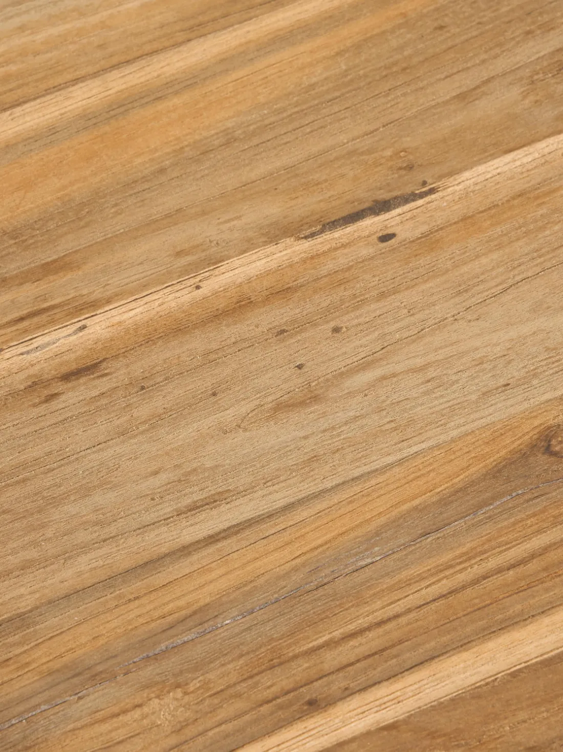 Si la teca no se trata, una película delgada de color gris plateado se puede formar con el tiempo en la superficie. Se recomienda frotar la madera con un estropajo áspero y agua tibia, al menos una vez al año. Si deseas mantener el color original de la madera de teca, se recomienda el uso de aceite de teca adecuado.