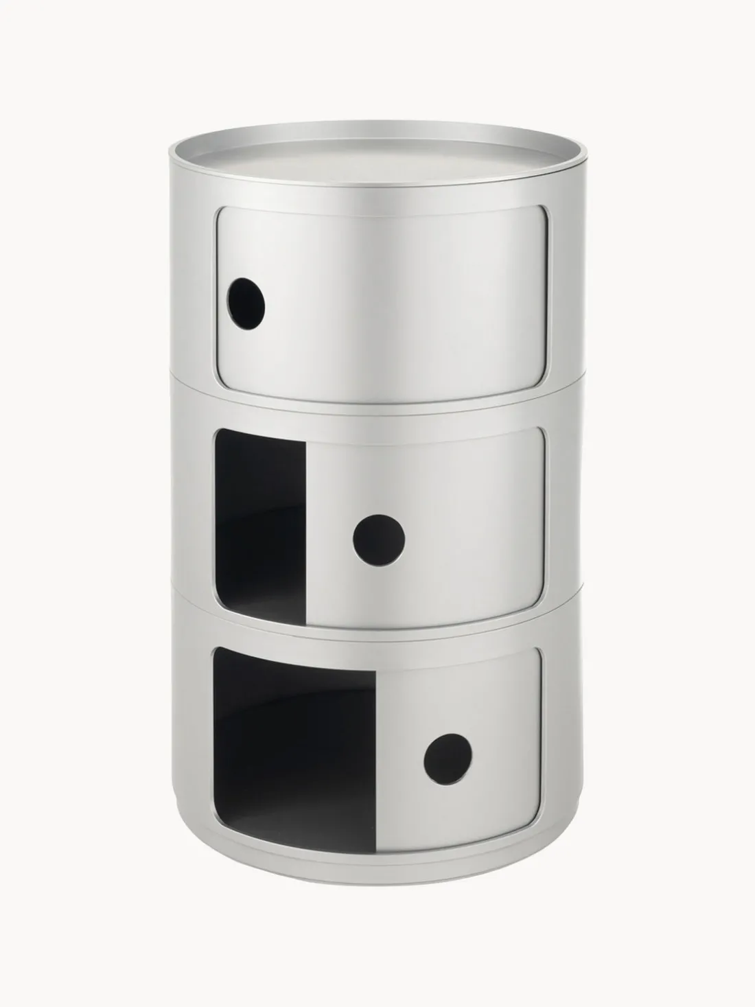 Diseñados por Anna Castelli Ferrieri en 1967, los muebles de almacenamiento COMPONIBILI son considerados una pieza de diseño icónica. Con sus módulos flexibles de dos, tres o cuatro compartimentos, se adaptan fácilmente a cualquier habitación y ofrecen una amplia gama de posibilidades de uso. Su diseño minimalista permite integrarlos sin esfuerzo en una amplia variedad de estilos de interior, sin renunciar a la funcionalidad.