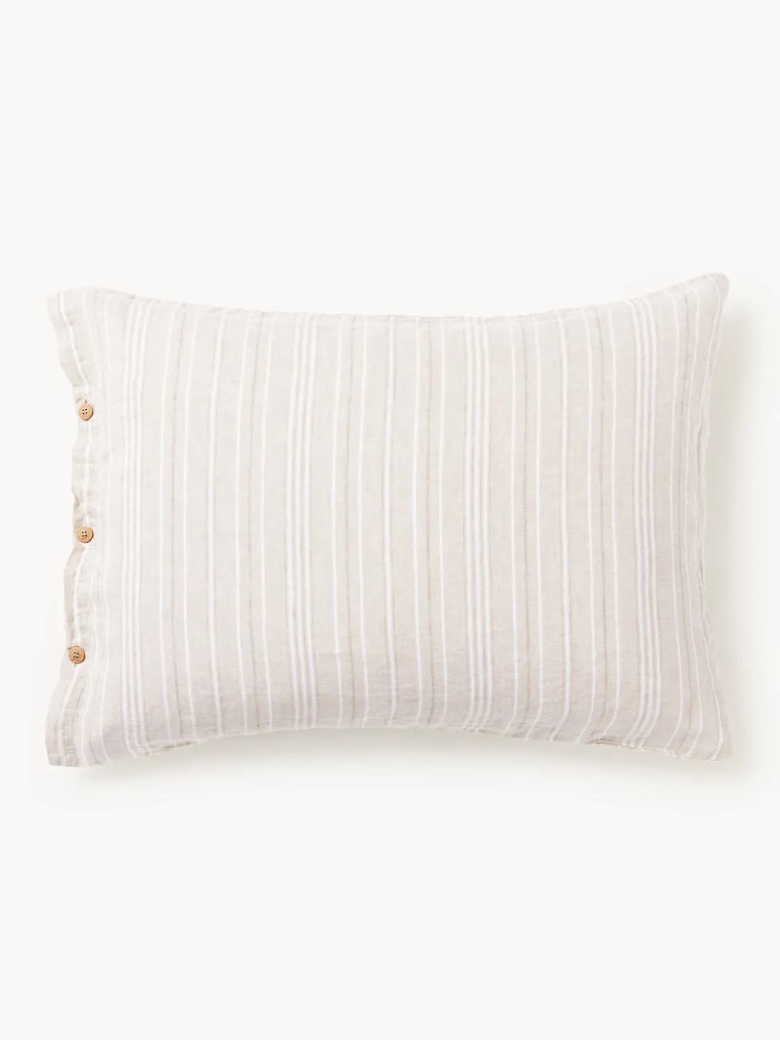La funda de almohada de lino tiene un cierre de botones. Hecho en Portugal