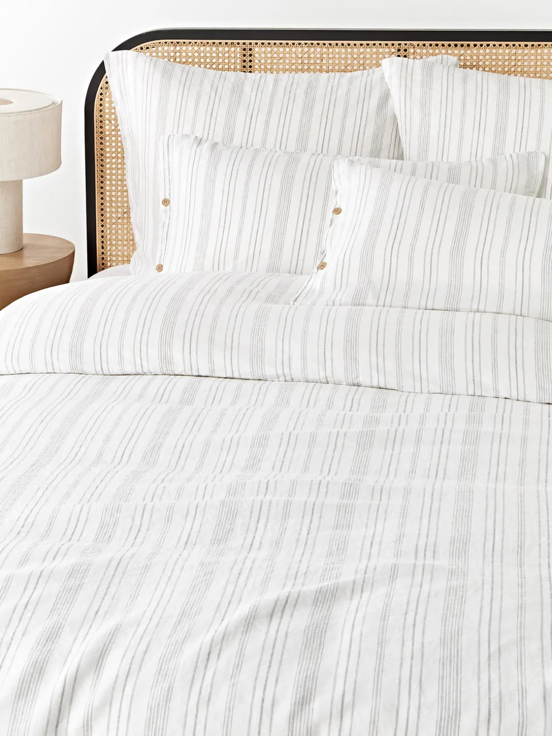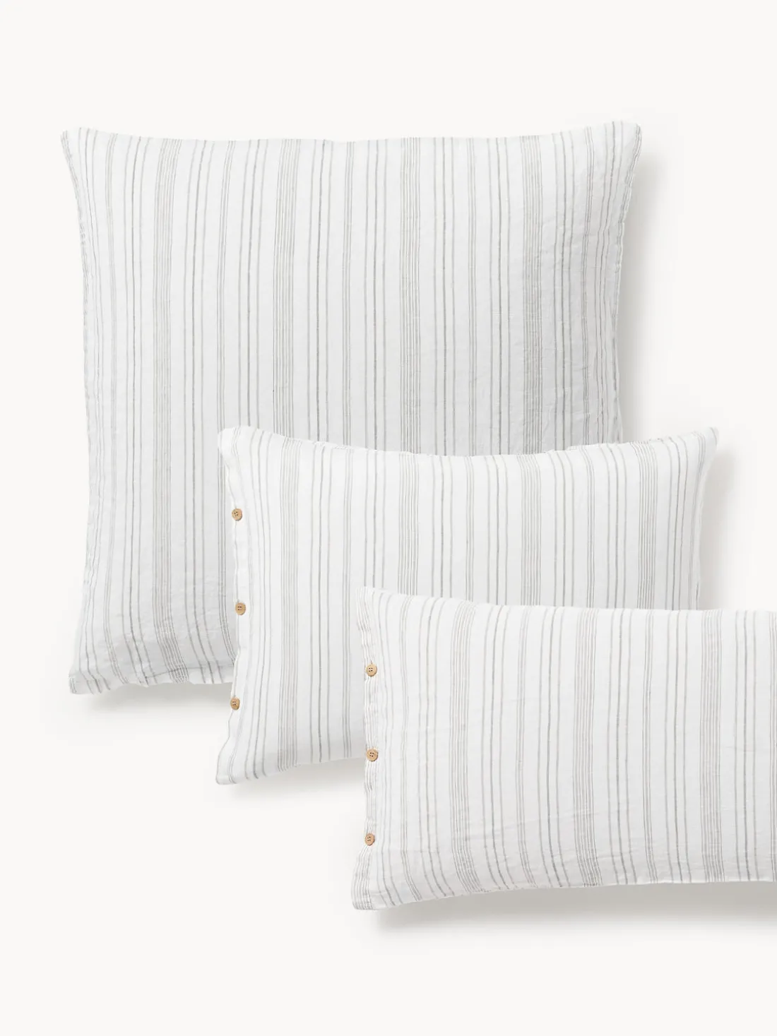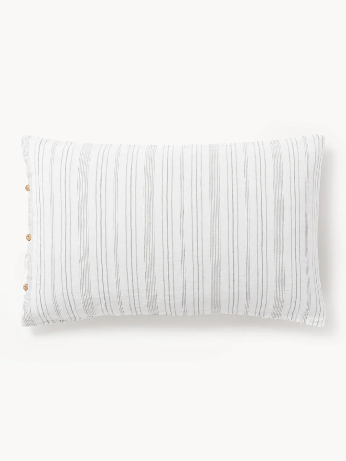 La funda de almohada de lino tiene un cierre de botones. Hecho en Portugal