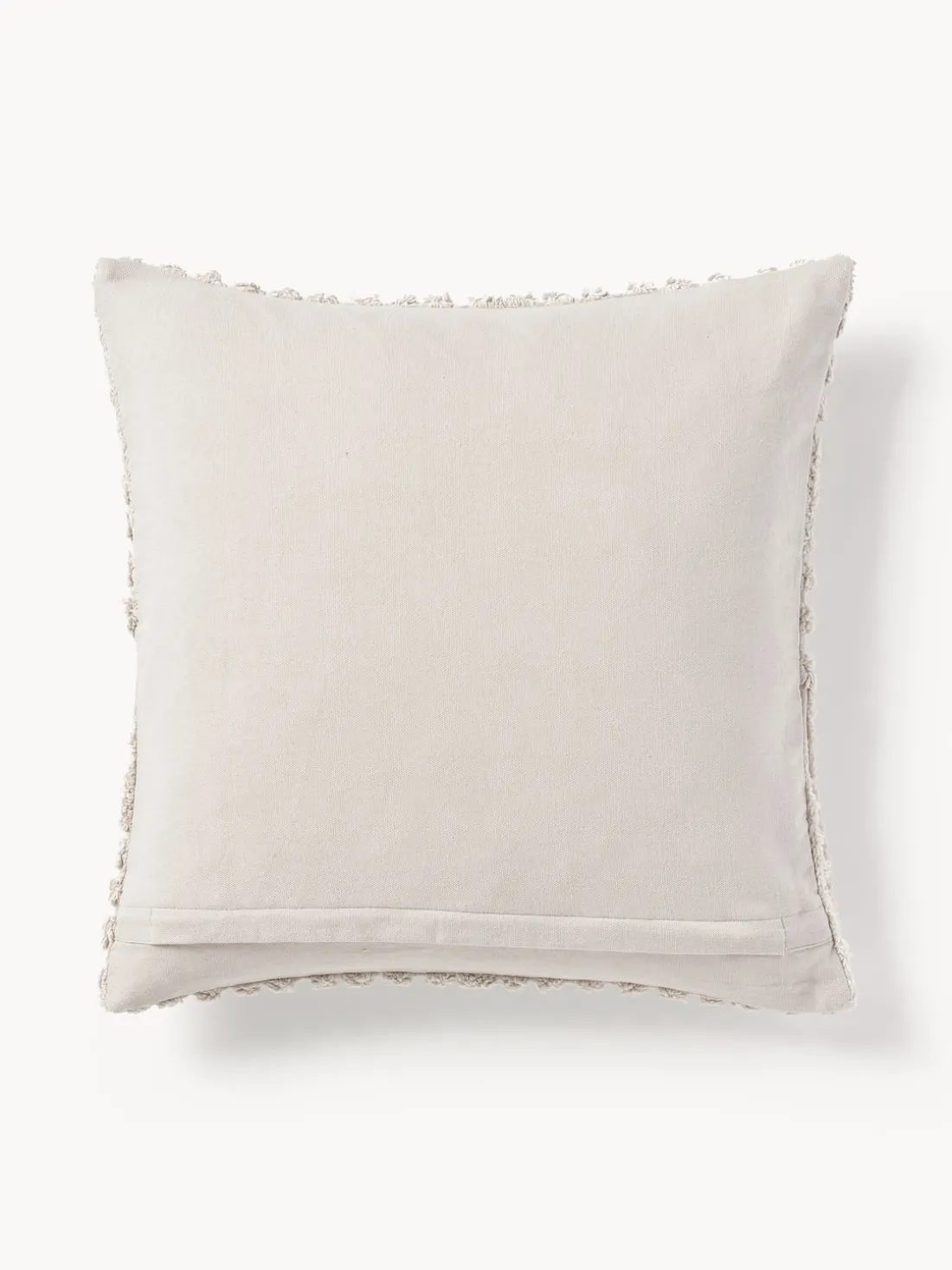 La funda de cojín con adorno decorativo con mechones se entrega sin relleno, tipo de cierre con cremallera.