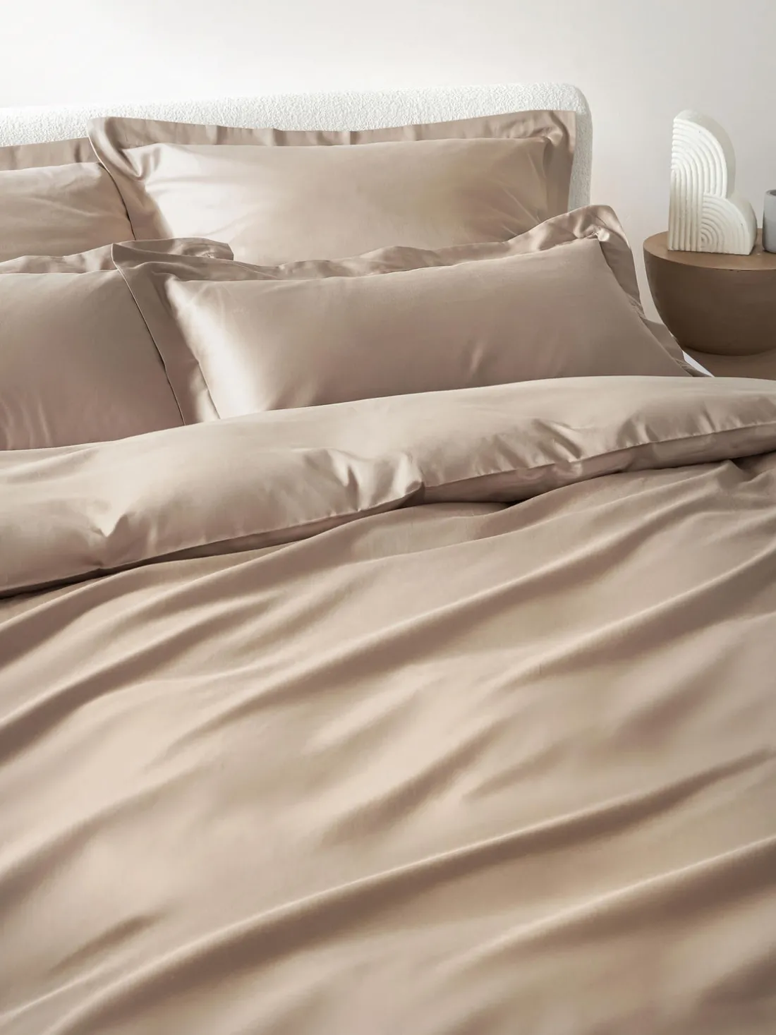 Funda nórdica de satén de algodón con dobladillo elevado, tipo de cierre con botones. Hecho en Portugal.