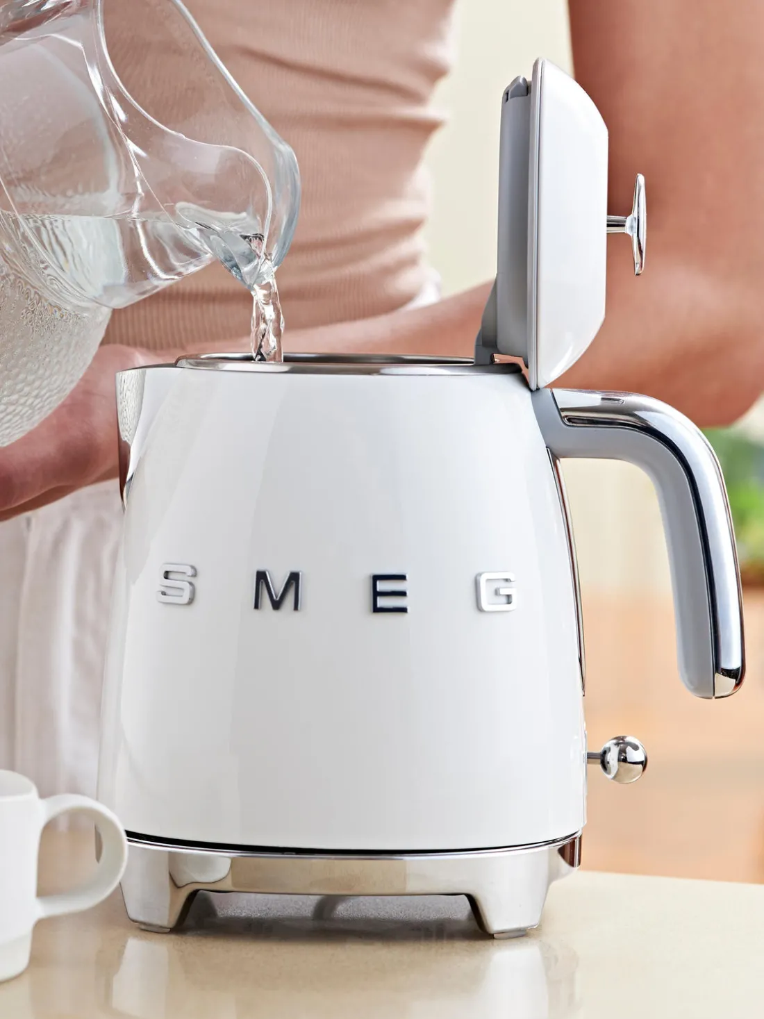 Desde el desayuno hasta el té de las cinco, desde un rápido descanso hasta una relajante velada: el hervidor de Smeg hace que cada momento sea especial. Con él, podrás calentar agua en un abrir y cerrar de ojos. E incluso cuando no lo usas, sería una pena esconderlo.