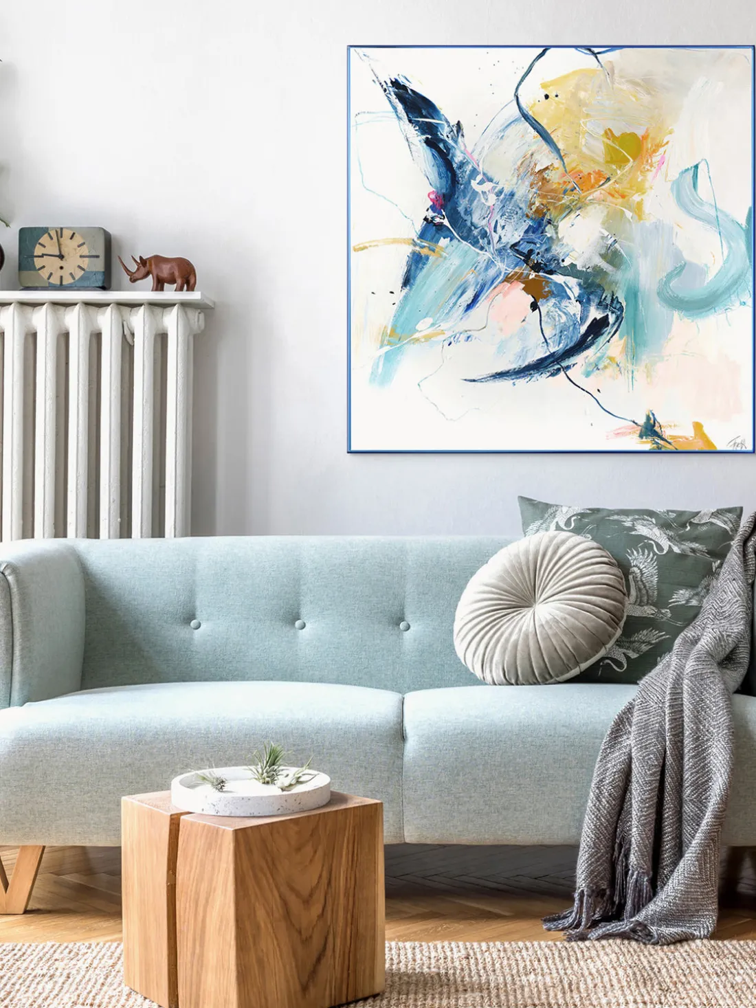 Impresión sobre lienzo acabada a mano enmarcada Confidential Blue