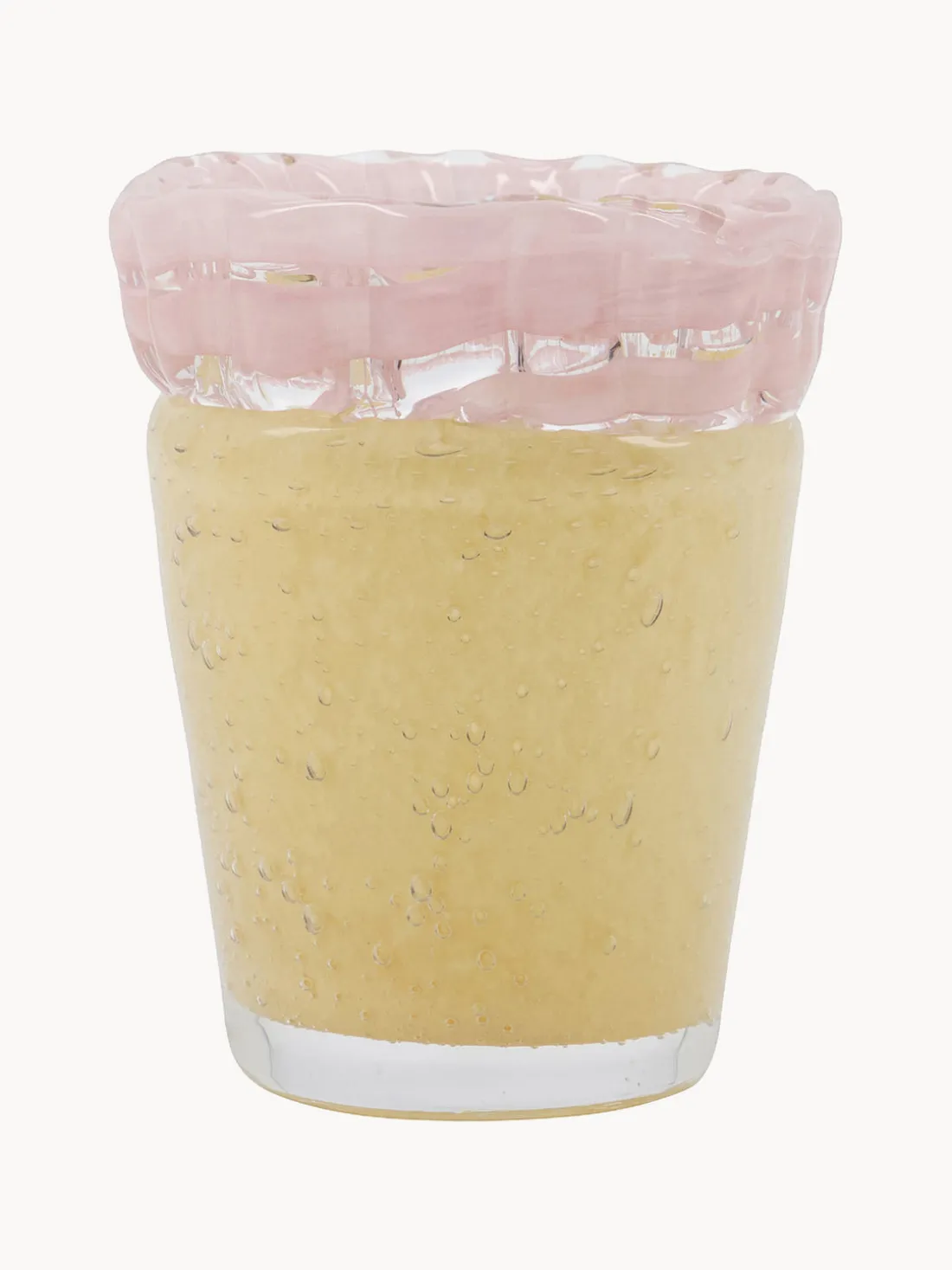 Este encantador jarrón de vidrio artesanal le dará un toque de elegancia a tu hogar. No solo es adecuado como elemento decorativo, sino también como portavelas, que proporciona una luz cálida y acogedora. La estructura de vidrio con pequeñas burbujas de aire hace que cada jarrón sea único y le da un toque de individualidad a tu interior.