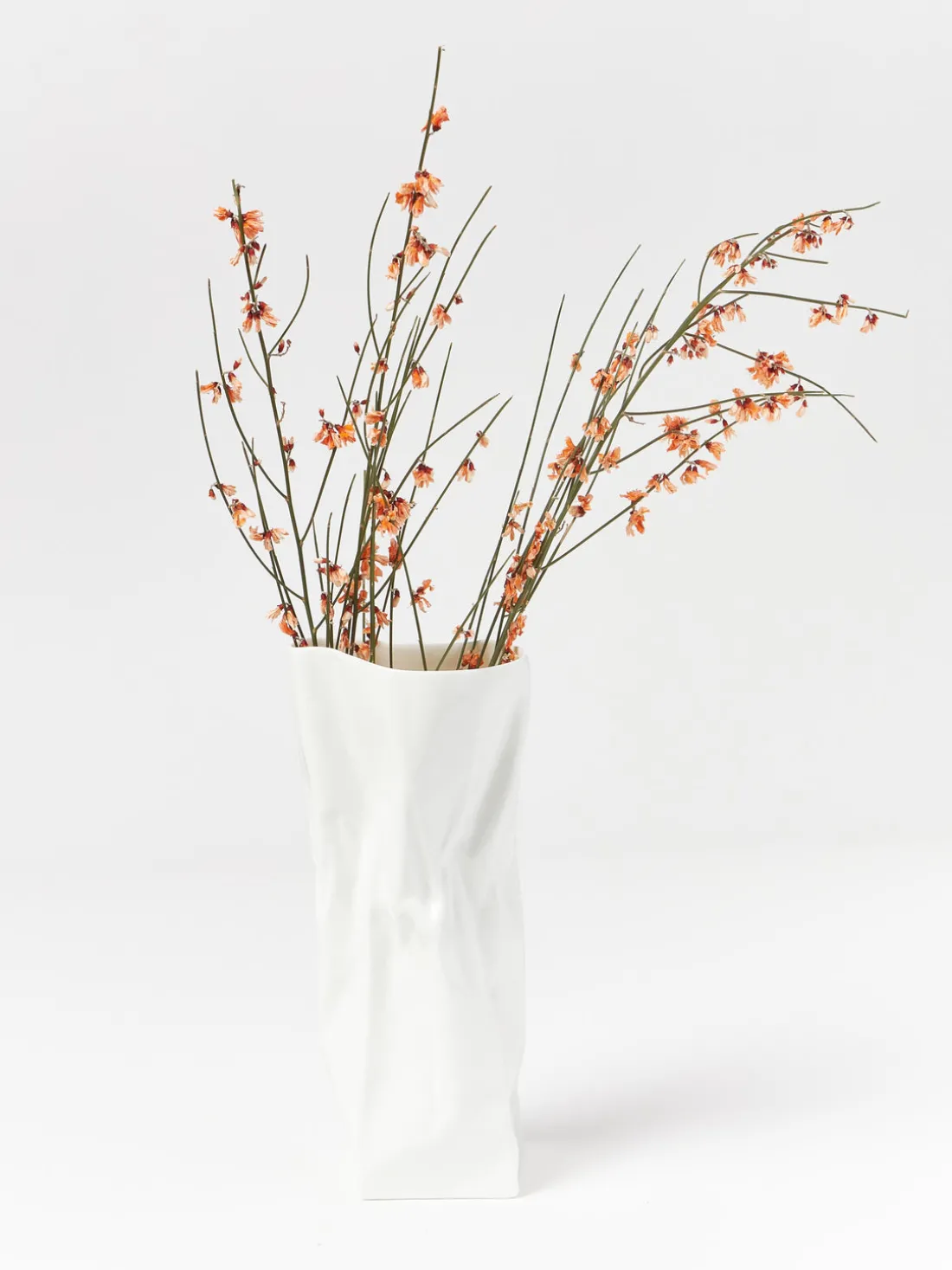 El jarrón ADELAIDE impresiona por su forma única y fluida. Inspirado en el papel arrugado, aporta un toque de escultura moderna a tu hogar. Un objeto de diseño fascinante que irradia una fuerte presencia incluso sin flores.
