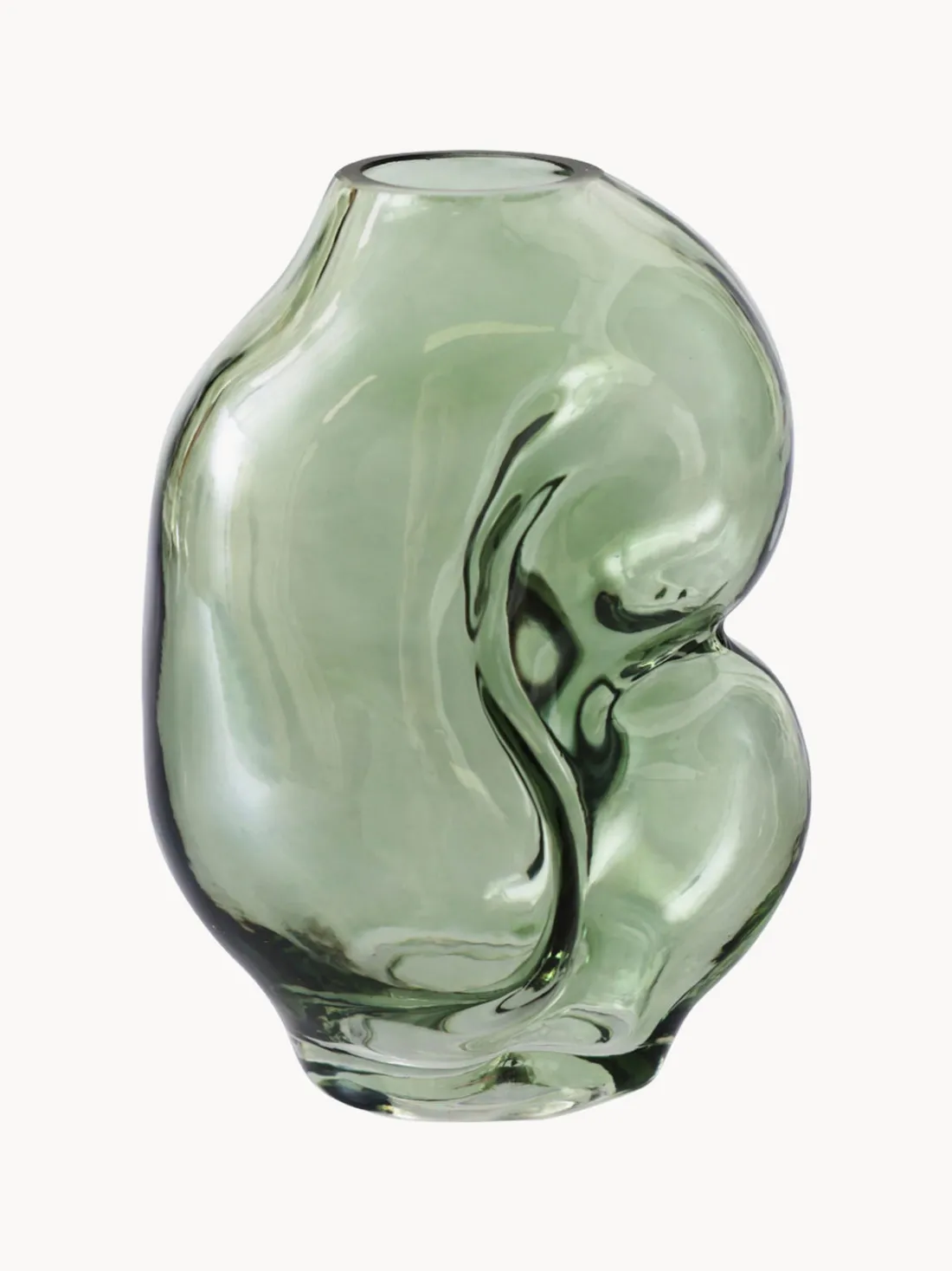 Trae un toque de naturaleza a tu hogar con este jarrón de cristal de forma orgánica. Su forma fluida recuerda a las curvas de la naturaleza, mientras que su moderno acabado crea un sofisticado contraste. Perfecto para exponer flores frescas o como pieza de decoración.
