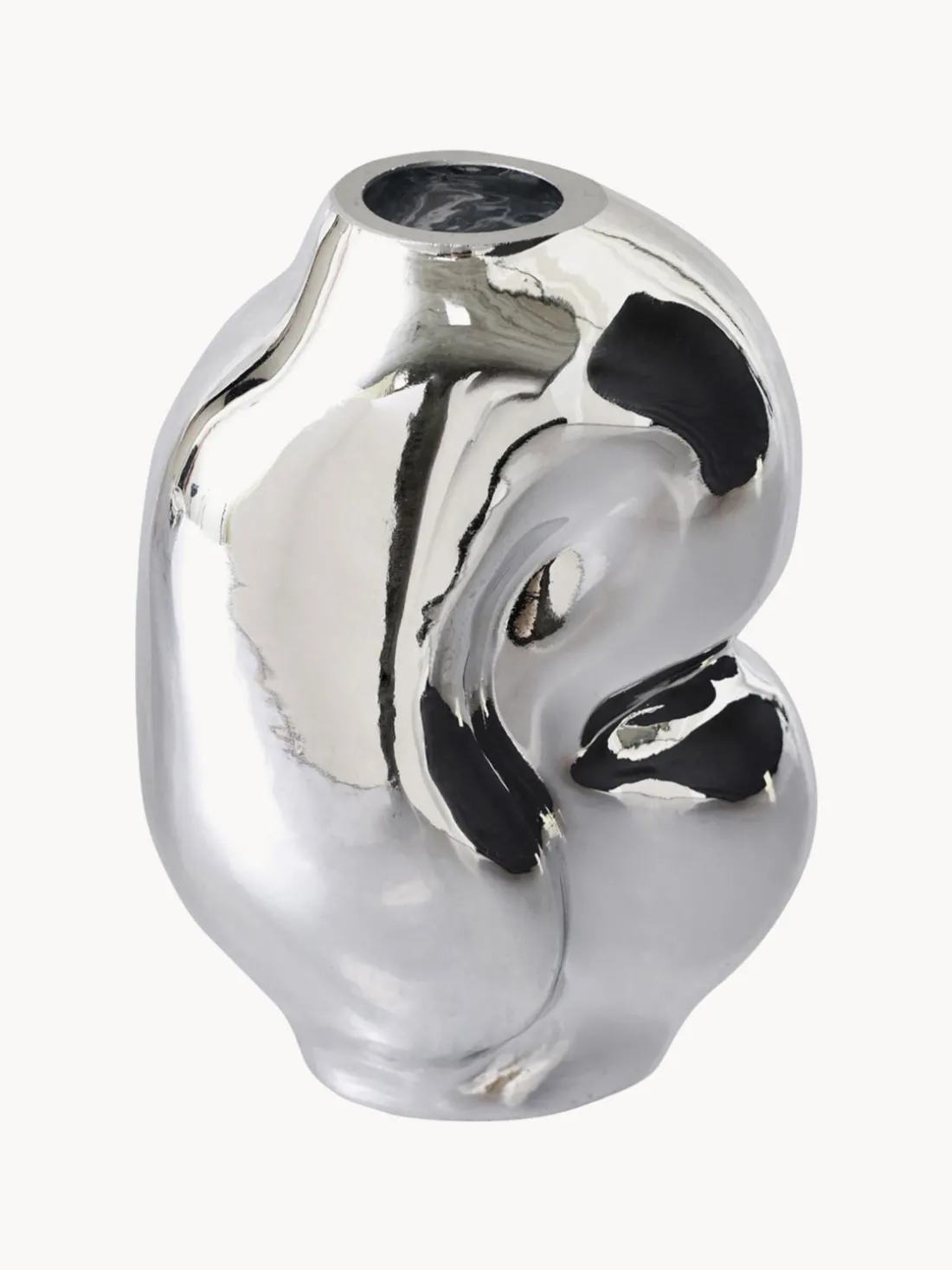 Trae un toque de naturaleza a tu hogar con este jarrón de cristal de forma orgánica. Su forma fluida recuerda a las curvas de la naturaleza, mientras que su moderno acabado crea un sofisticado contraste. Perfecto para exponer flores frescas o como pieza de decoración.
