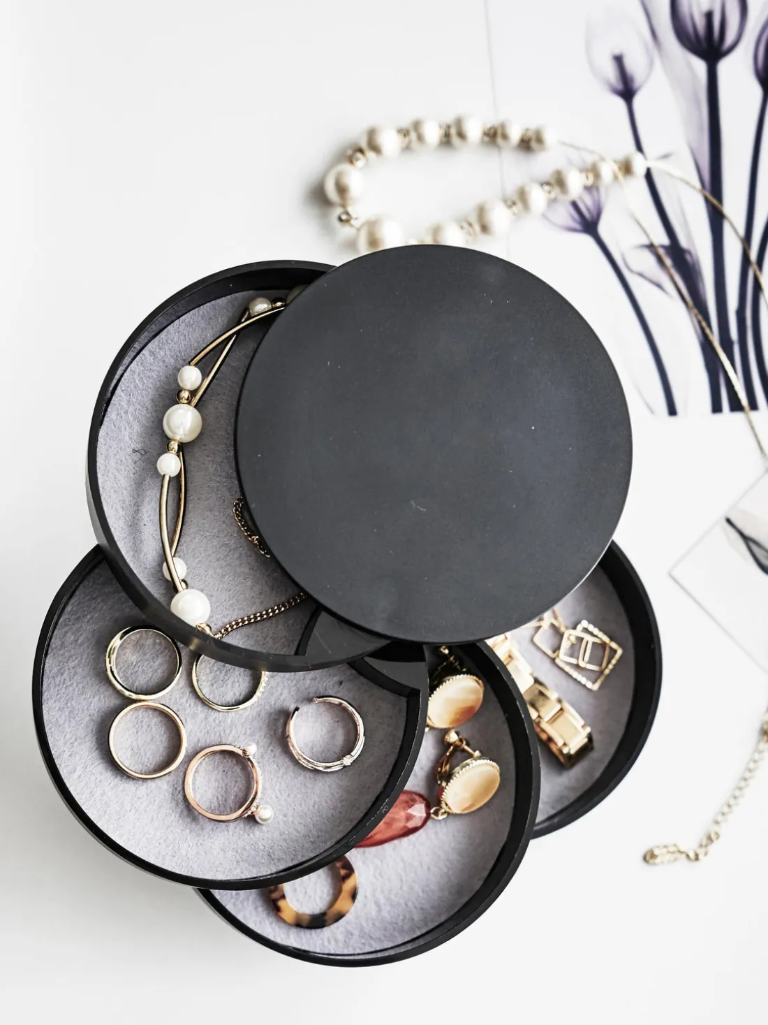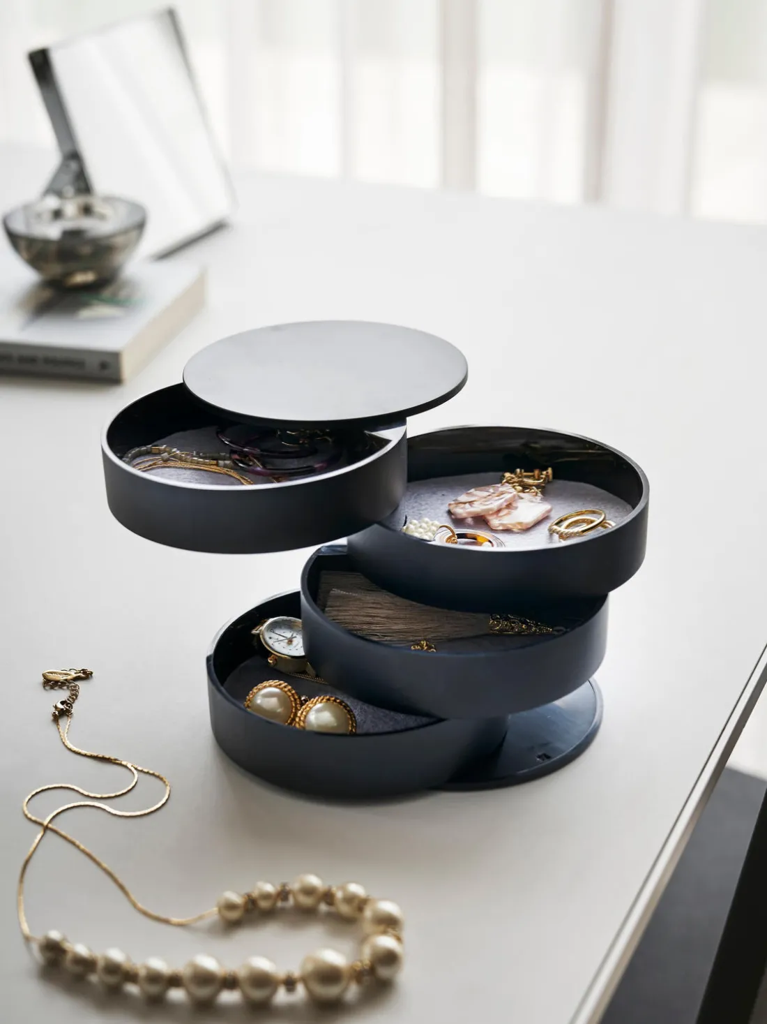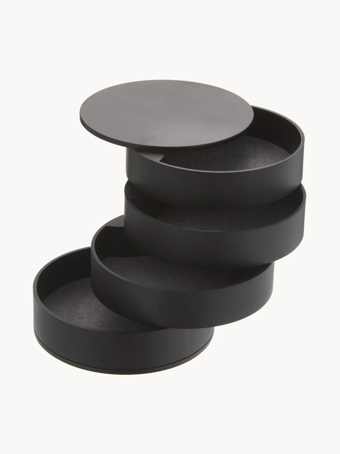 Joyero pequeño con 4 compartimentos que se pueden girar 360 grados.
