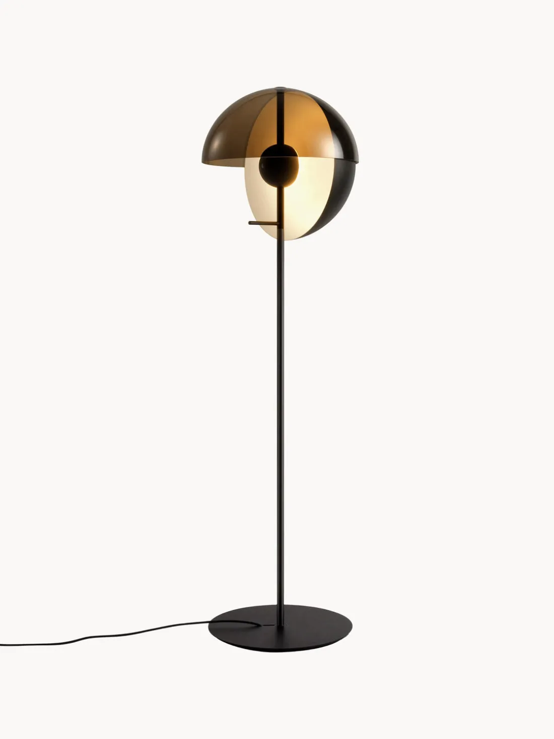 Theia tiene dos caras: para descubrirlas, sólo hay que girar la lámpara sobre su eje central. Puede alinearse hacia ti y utilizarse como lámpara de lectura, o dirigirse hacia un objeto o una pared, creando una luz sutil e indirecta que calienta inmediatamente el ambiente. Como la pantalla metálica de Theia es completamente opaca, esta rotación transforma completamente la percepción de la pieza.
