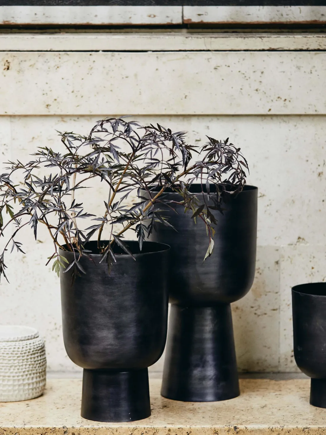 El macetero Galoa está fabricado en aluminio y tiene un diseño atemporal y sencillo. El aspecto industrial y las líneas limpias permiten que las plantas ocupen su lugar central.