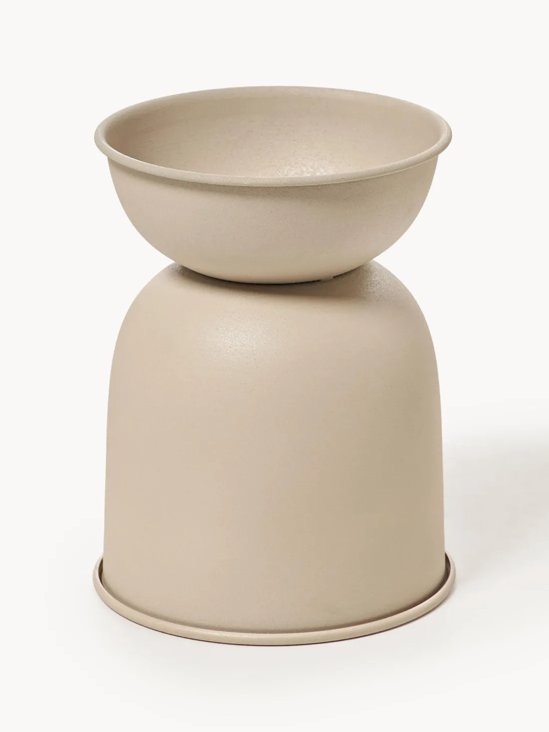 El macetero Hourglass con superficie mate no sólo eleva tus plantas, sino que también es un expresivo complemento para cualquier habitación. Su pequeña forma de reloj de arena es ideal para habitaciones con poco espacio. Gracias a su resistencia a la intemperie, el macetero también es adecuado para terrazas o balcones.