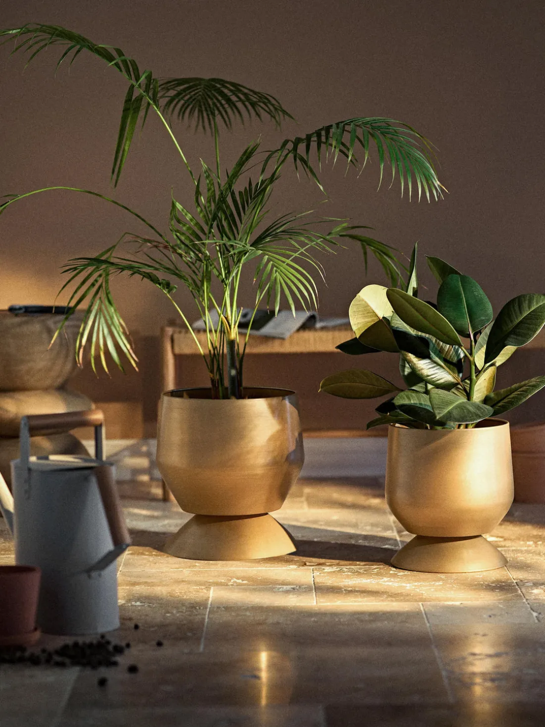 Dado que las macetas no tienen orificios de drenaje, recomendamos utilizar una maceta interior para un riego uniforme.