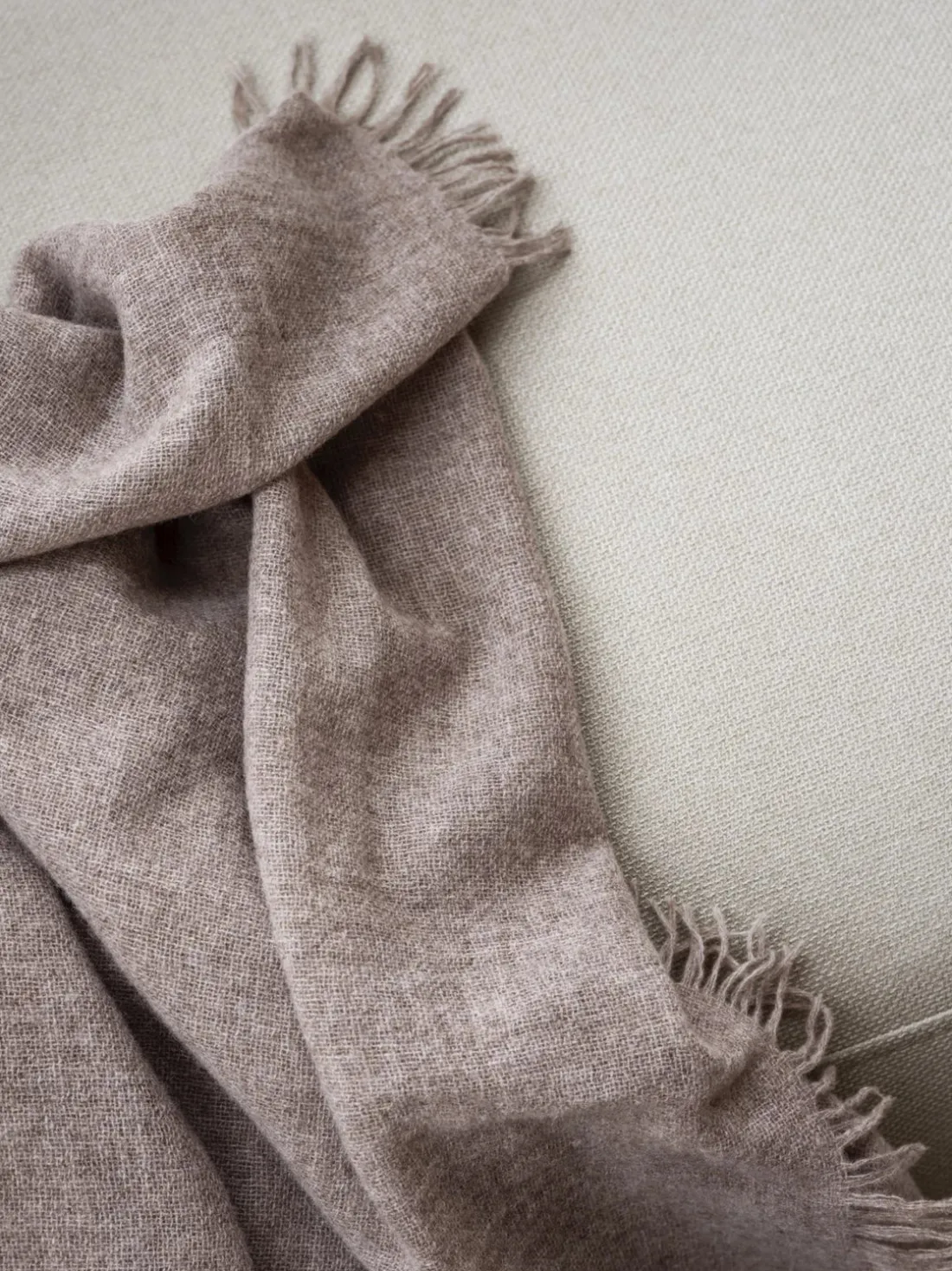 Esta manta casual es perfecta para acurrucarse en los días o noches frías, justo cuando empieza a hacer un poco más de frío. Una fina manta de lana en mezcla de pelo. Esta hecha de una mezcla de 85% de lana merino y 15% de cachemira y impresiona con su suave modestia. La lana merino es libre de mulesing y ha sido procesada y tejida íntegramente en Italia.