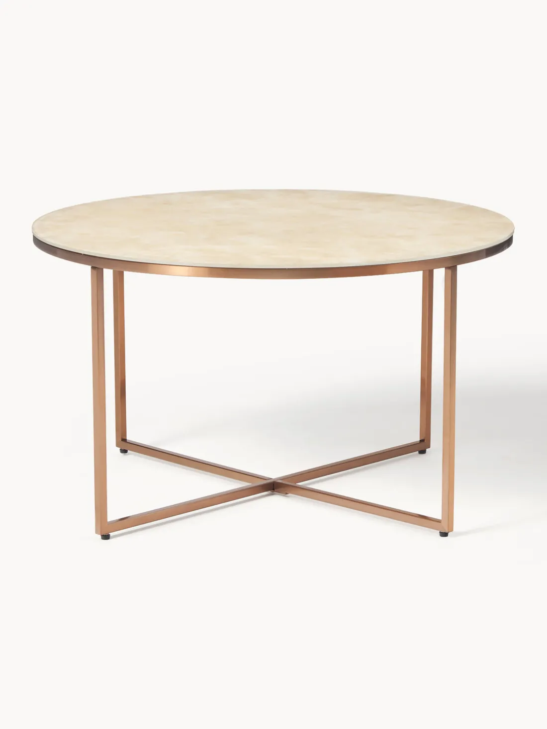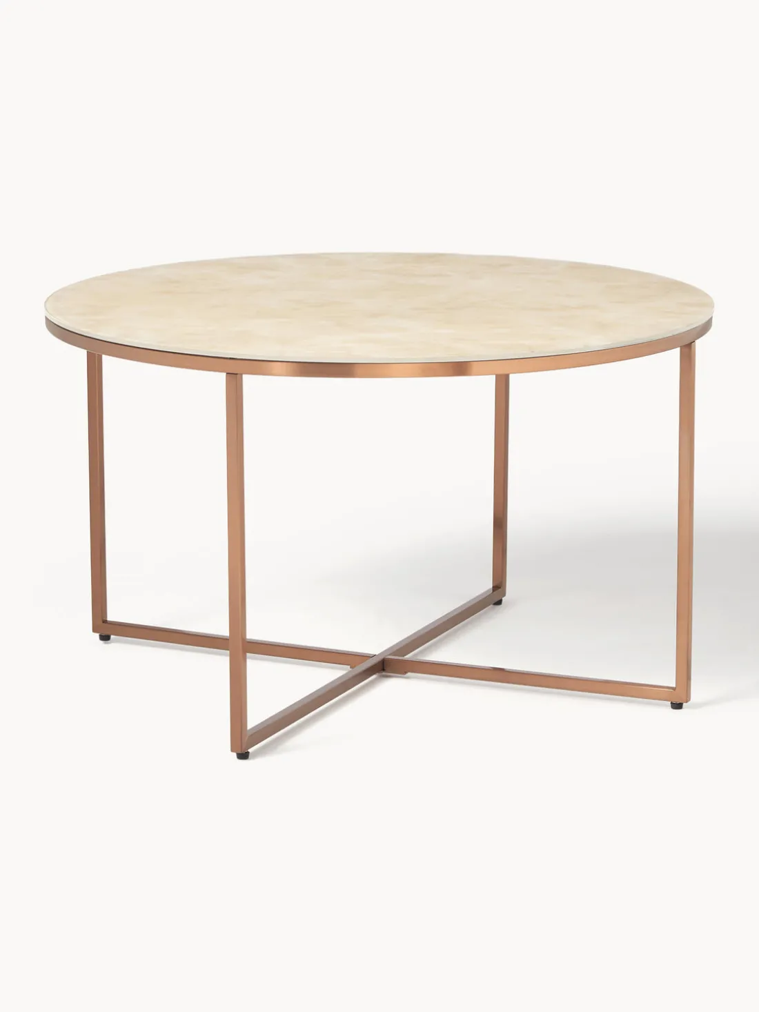 La mesa de centro redonda Antigua con tapa de vidrio símil mármol combina un diseño elegante y materiales de alta calidad para crear un punto de atracción atemporal en tu salón. La tapa de vidrio símil mármol le da a la mesa un toque elegante y personifica el lujo y la sofisticación, añadiendo un toque de opulencia a tu casa.