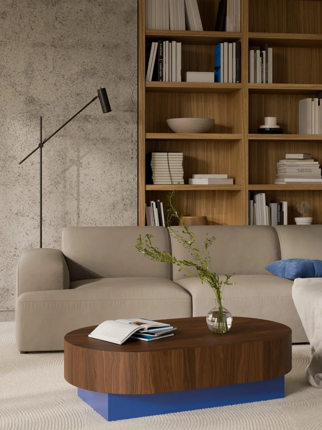 | Color | Madera de nogal lacada, azul |
