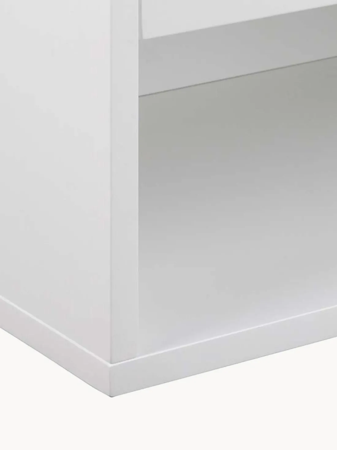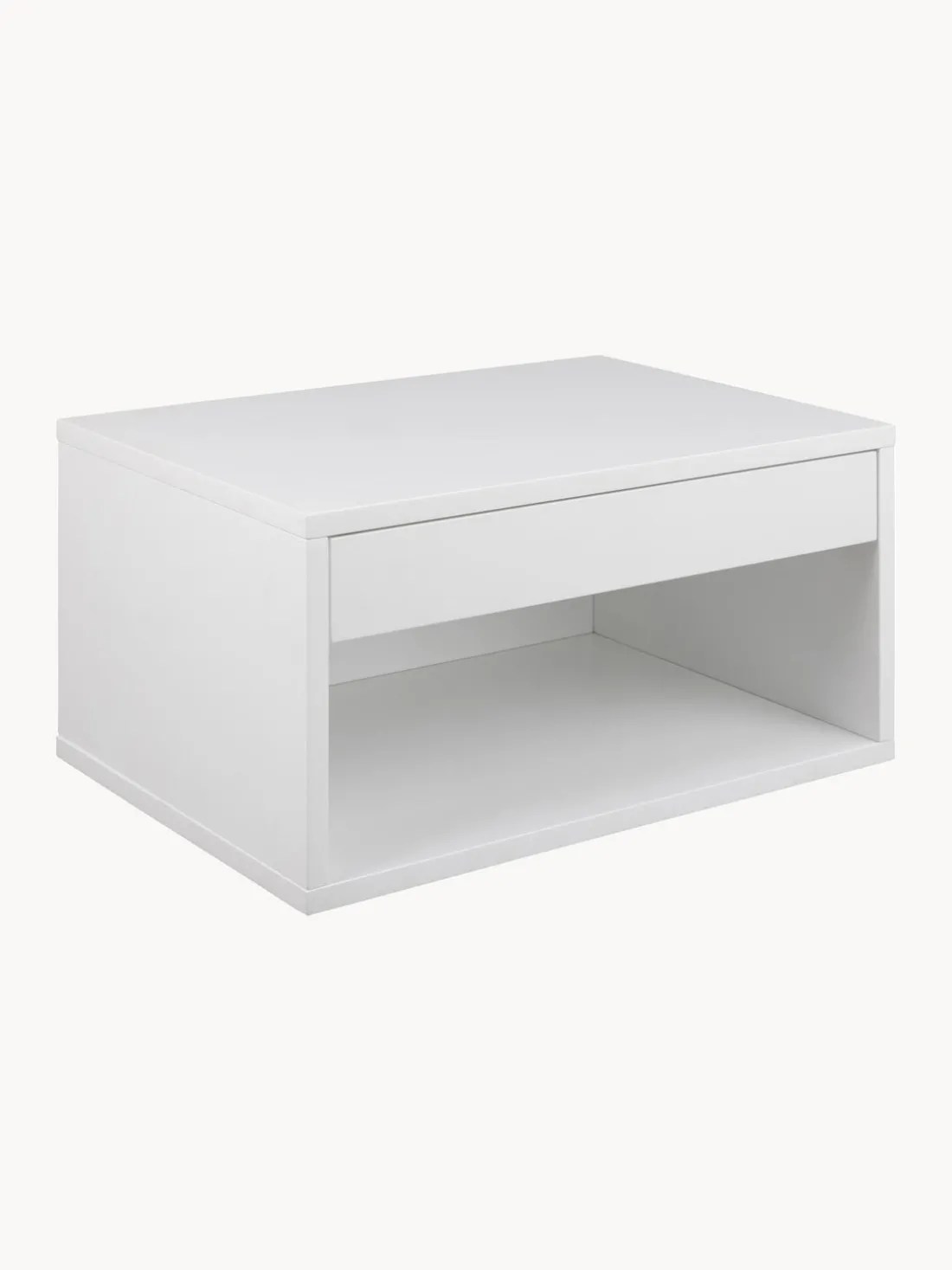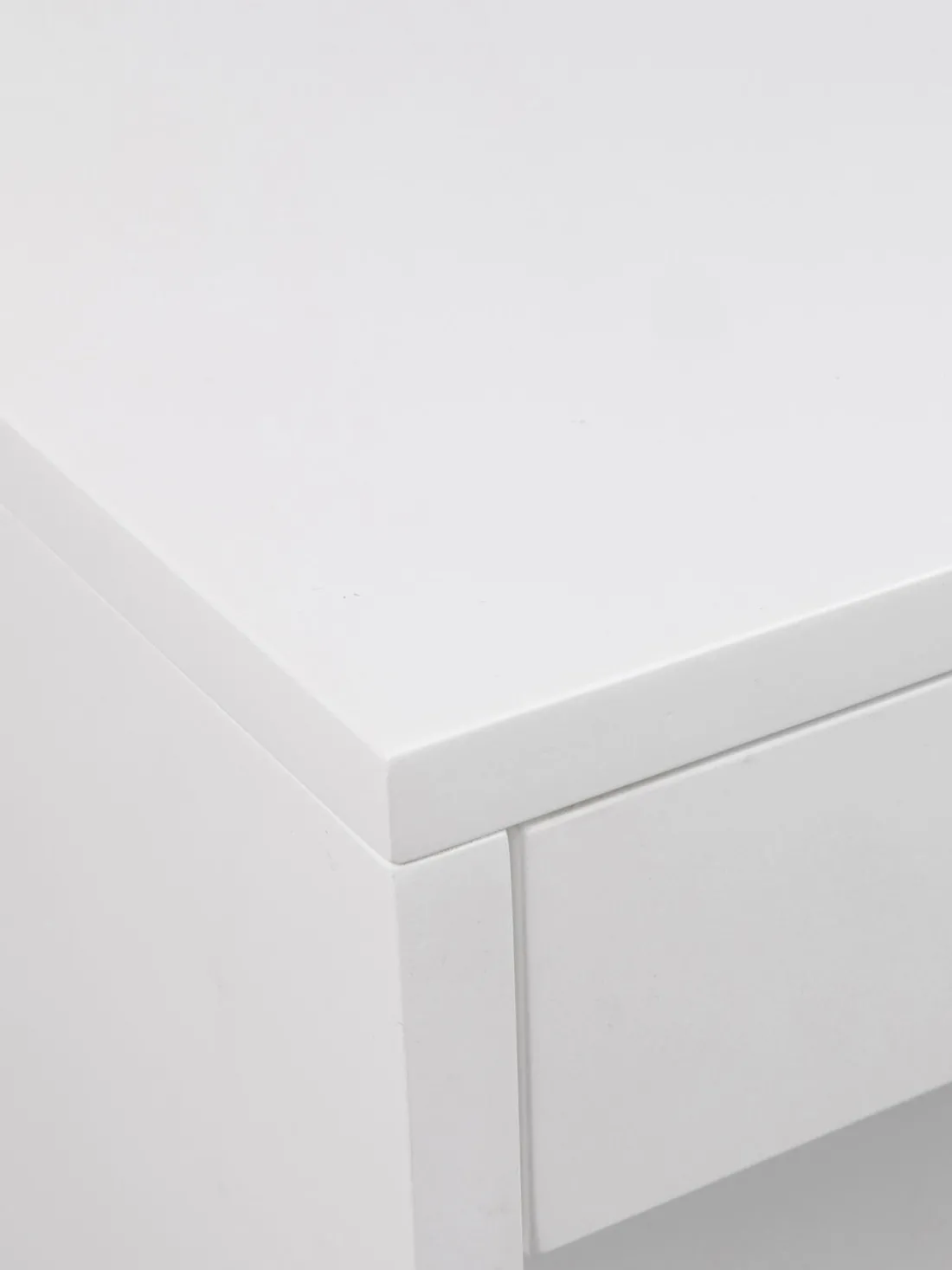 La mesita de noche tiene un cajón y un compartimento.