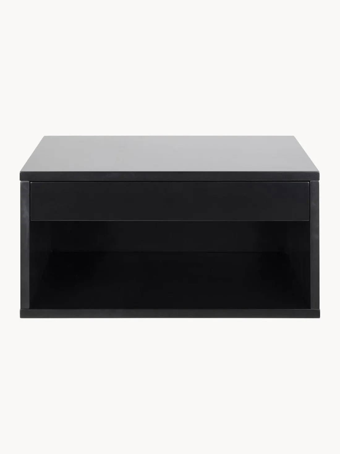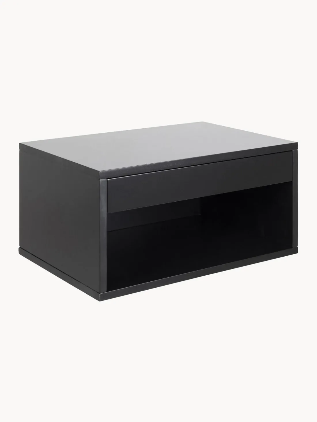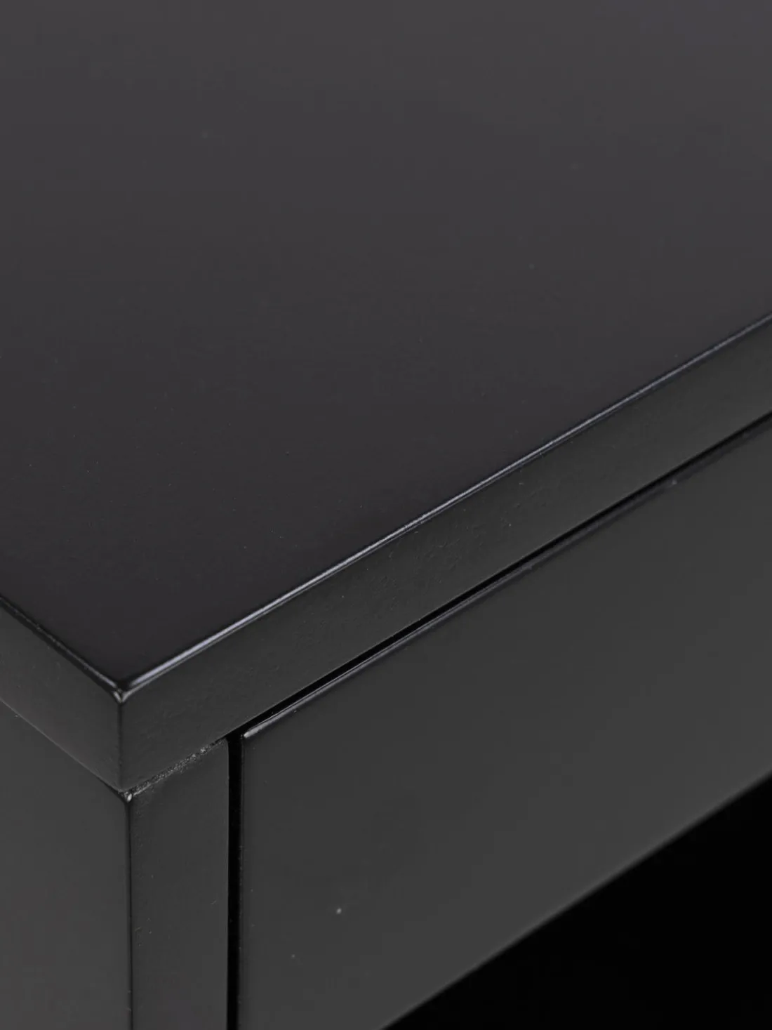 La mesita de noche tiene un cajón y un compartimento.