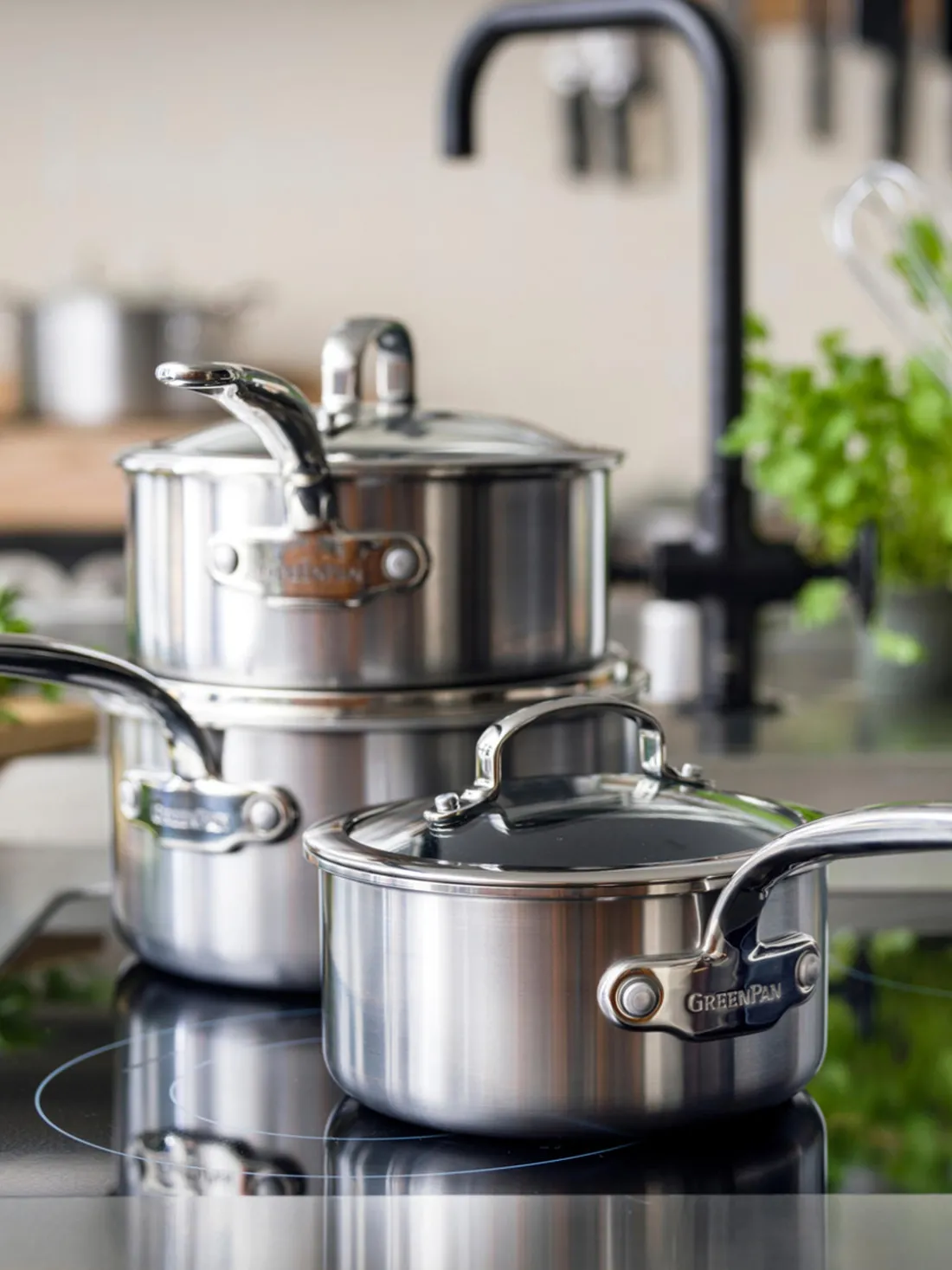 Las cacerolas tienen un revestimiento antiadherente para facilitar su manejo y limpieza y son aptas para todo tipo de cocinas, incluidas las de inducción.