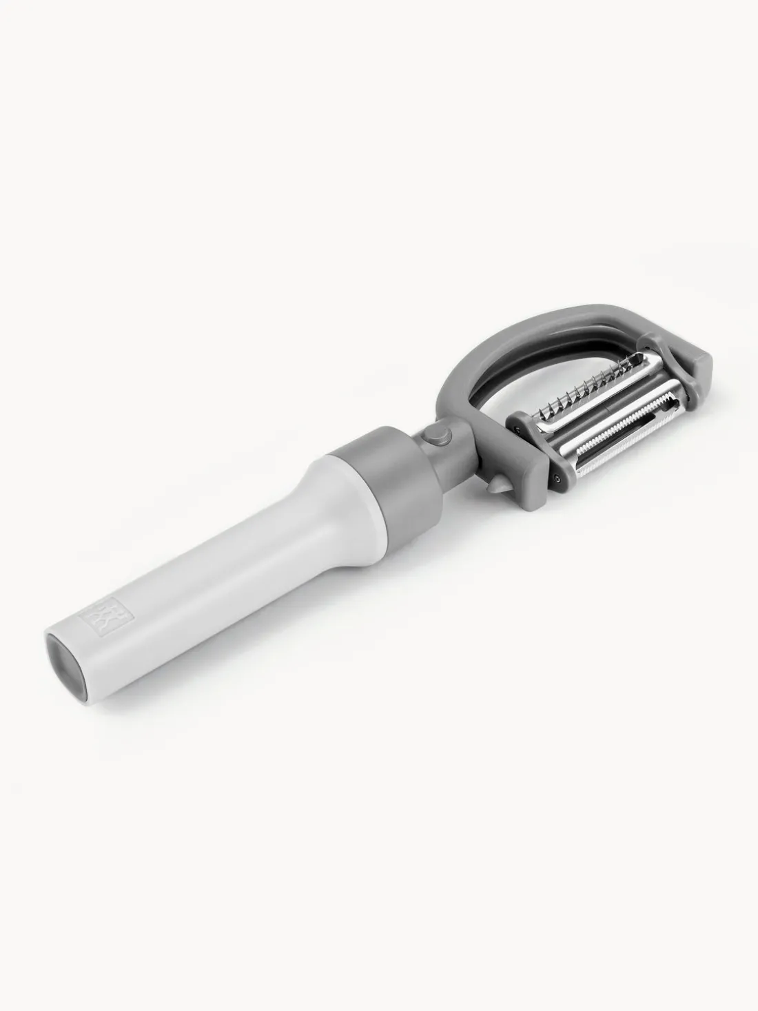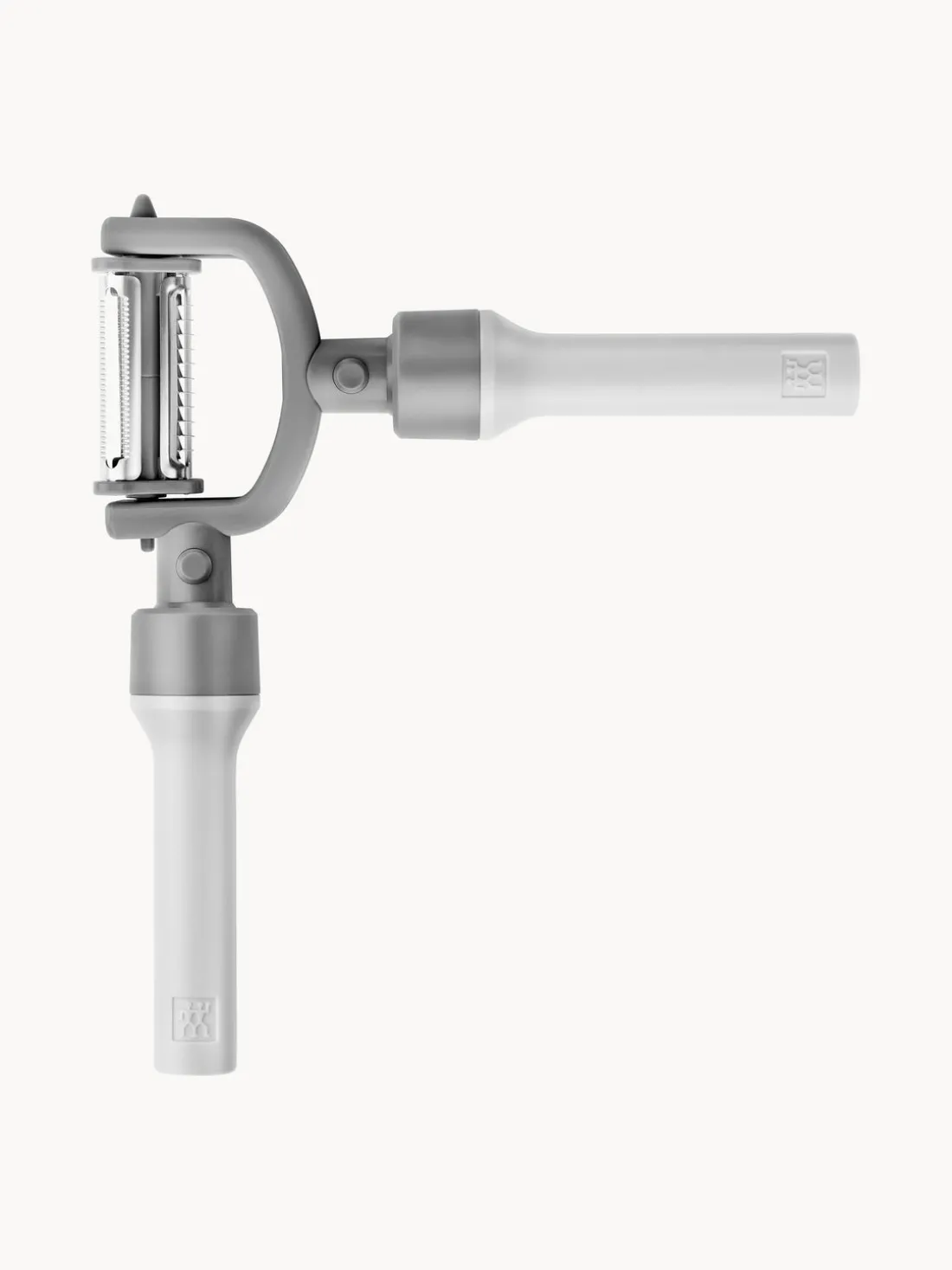 El pelador 5 en 1 tiene tres cuchillas afiladas intercambiables: una cuchilla normal para alimentos duros, una cuchilla dentada para alimentos blandos y una cuchilla para pelar en juliana. También puedes utilizar el pelador en dos formas diferentes: como pelador transversal (forma de Y) para cortar eficazmente alimentos alargados o como pelador longitudinal (forma de I), que es especialmente adecuado para alimentos redondeados, ideal como pelador de patatas o pelador de tomates. Otra ventaja del pelador es la máxima movilidad del cabezal. Gracias a la innovadora tecnología MotionBall, el cabezal se puede mover libremente y siempre puede adaptarse de forma óptima a la forma de la pieza a cortar.