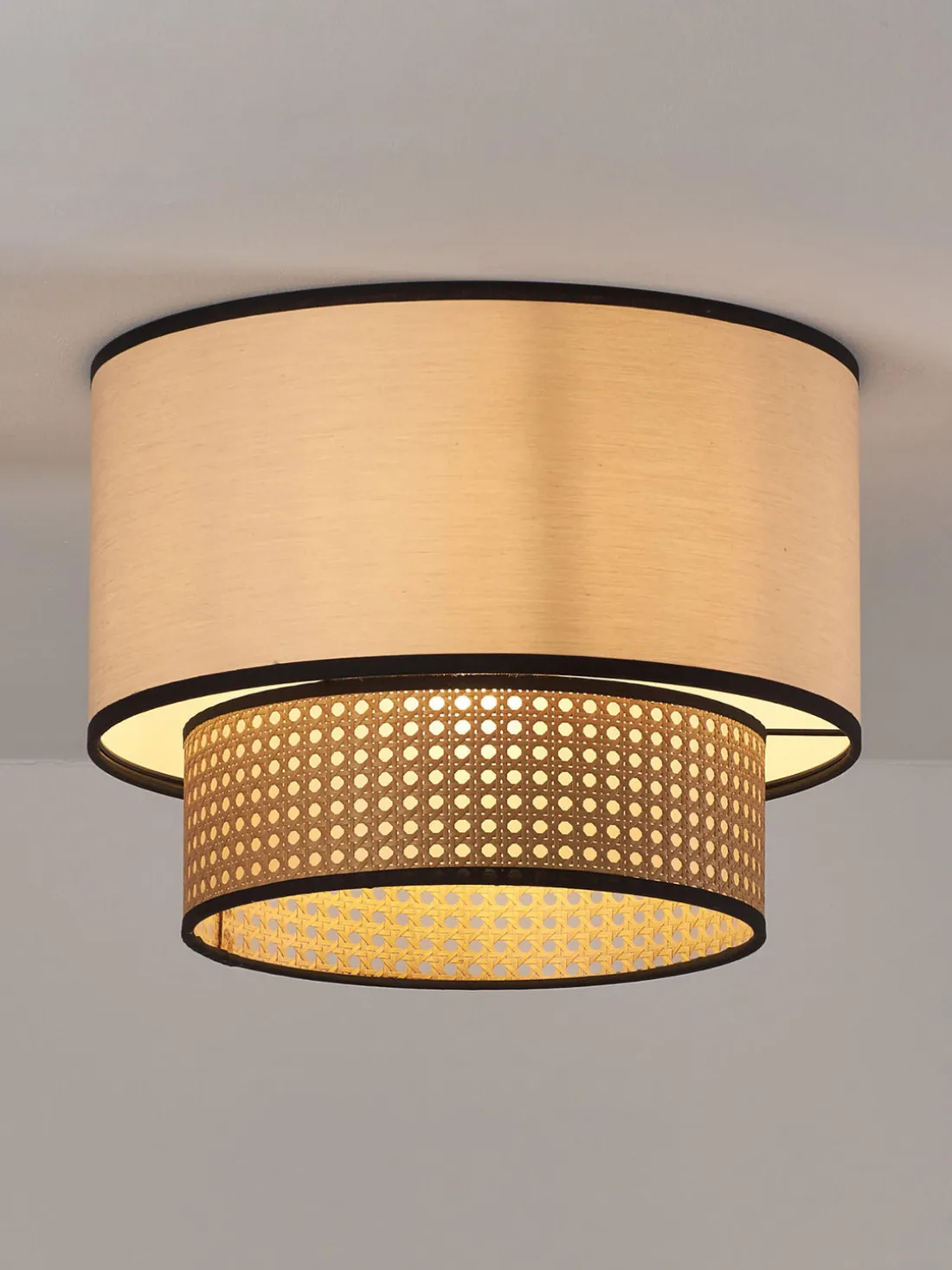 El diseño de la lámpara de techo Vienna se complementa con un esquema de colores distintivo. El dosel de la lámpara está acabado en negro mate, mientras que la pantalla está disponible en una elegante selección de tonos claros como marrón claro, negro y beige. Estas combinaciones de colores aportan una atmósfera cálida y acogedora a la habitación.