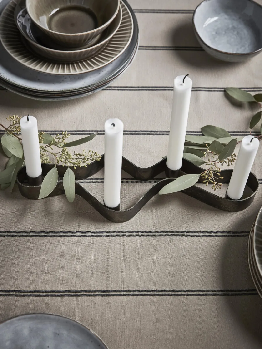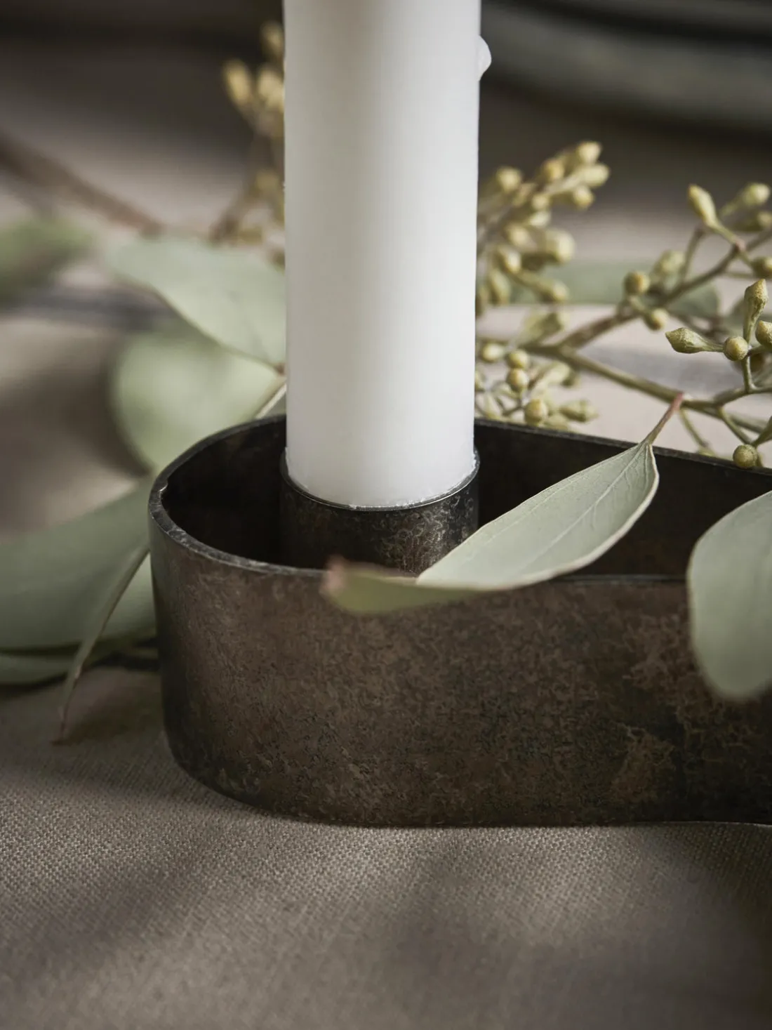 Dale a tu decoración navideña un aire ligeramente industrial con este portavelas de House Doctor. El portavelas combina sin esfuerzo una estética cruda y minimalista con formas orgánicas para un diseño completamente único. El portavelas encaja en cualquier sitio, con o sin adornos. Tiene espacio para cuatro velas, lo que lo convierte en una nueva interpretación de la tradicional corona de Adviento redonda.