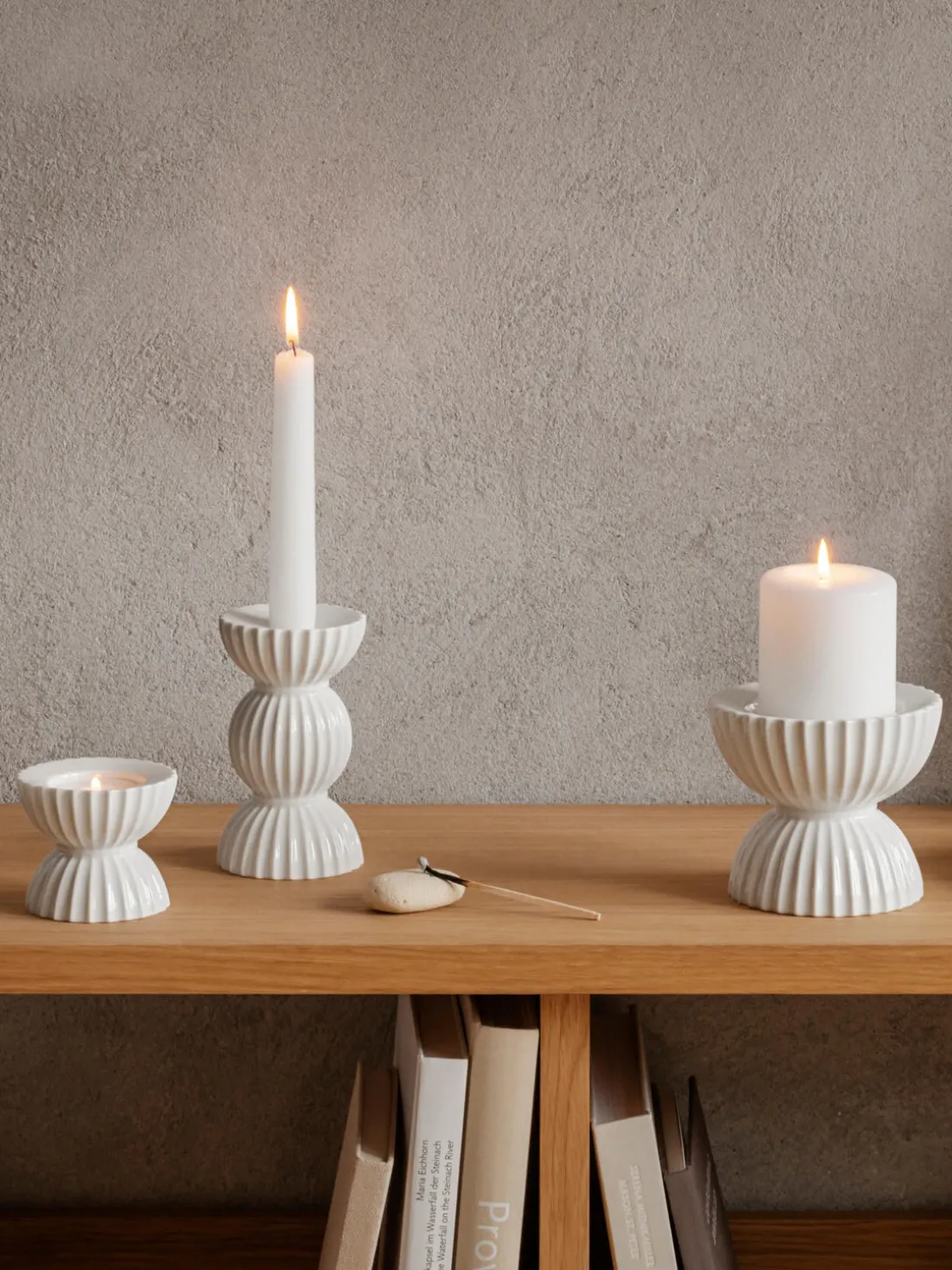 Portavelas de porcelana con relieves Tura
