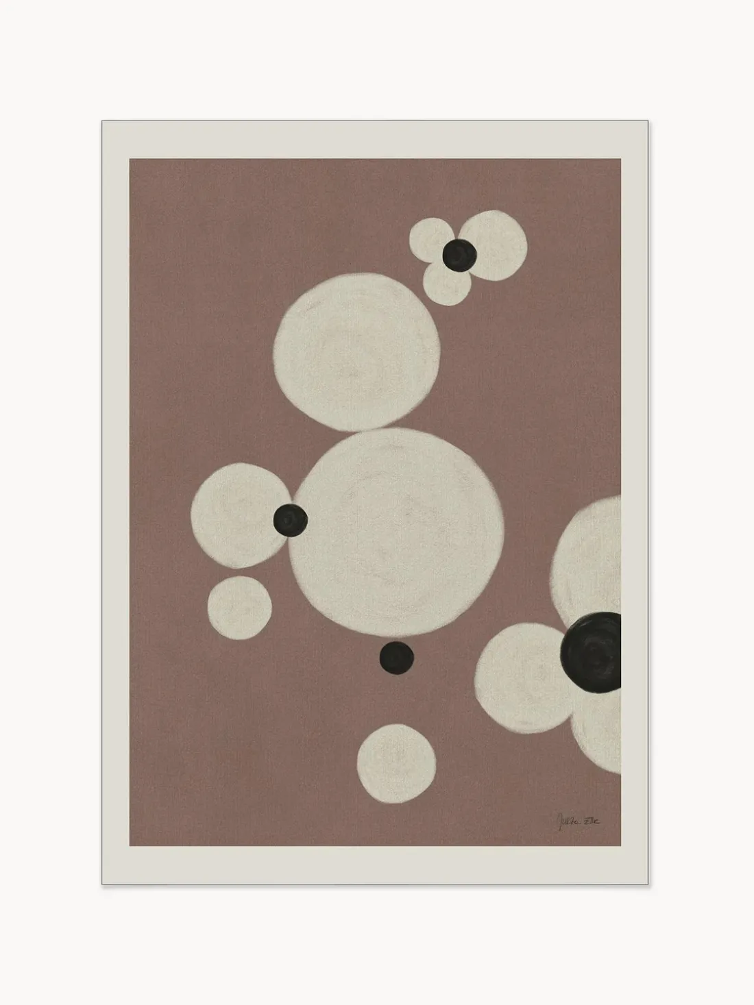 Elegante composición abstracta con suaves círculos sobre un fondo apagado, ideal para añadir un acento moderno y minimalista a cualquier habitación.