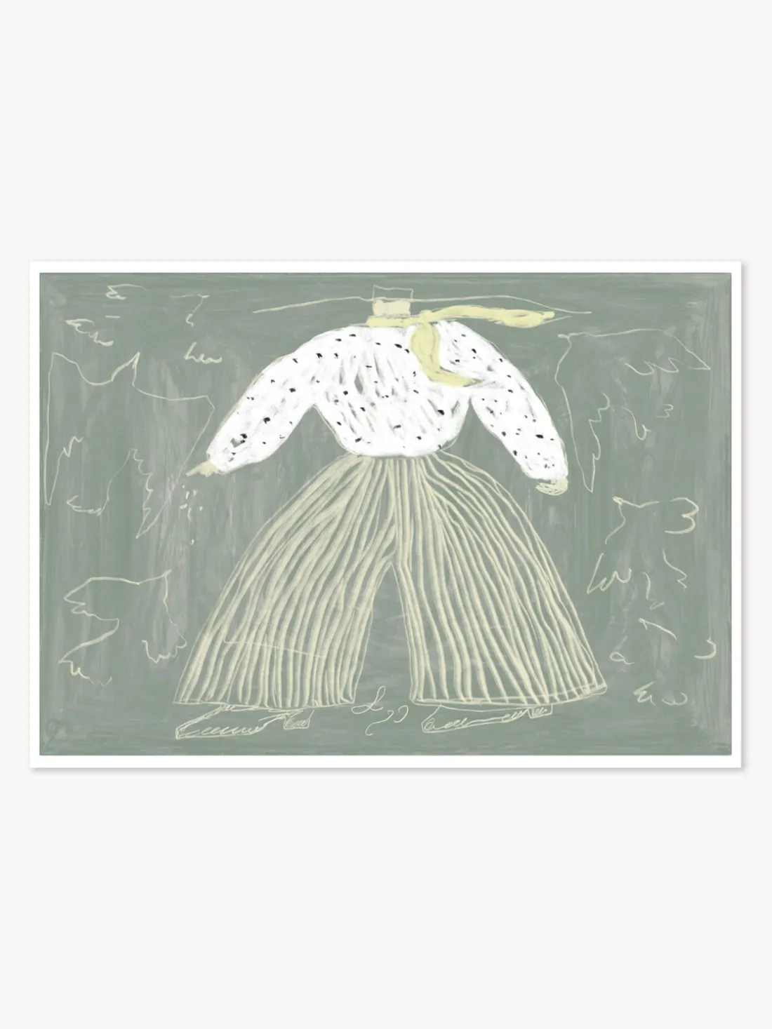 Descubre un cautivador dibujo abstracto de un pájaro con vibrantes verdes y amarillos, perfecto para añadir un toque de elegancia a cualquier decoración con temática de paisajes.
