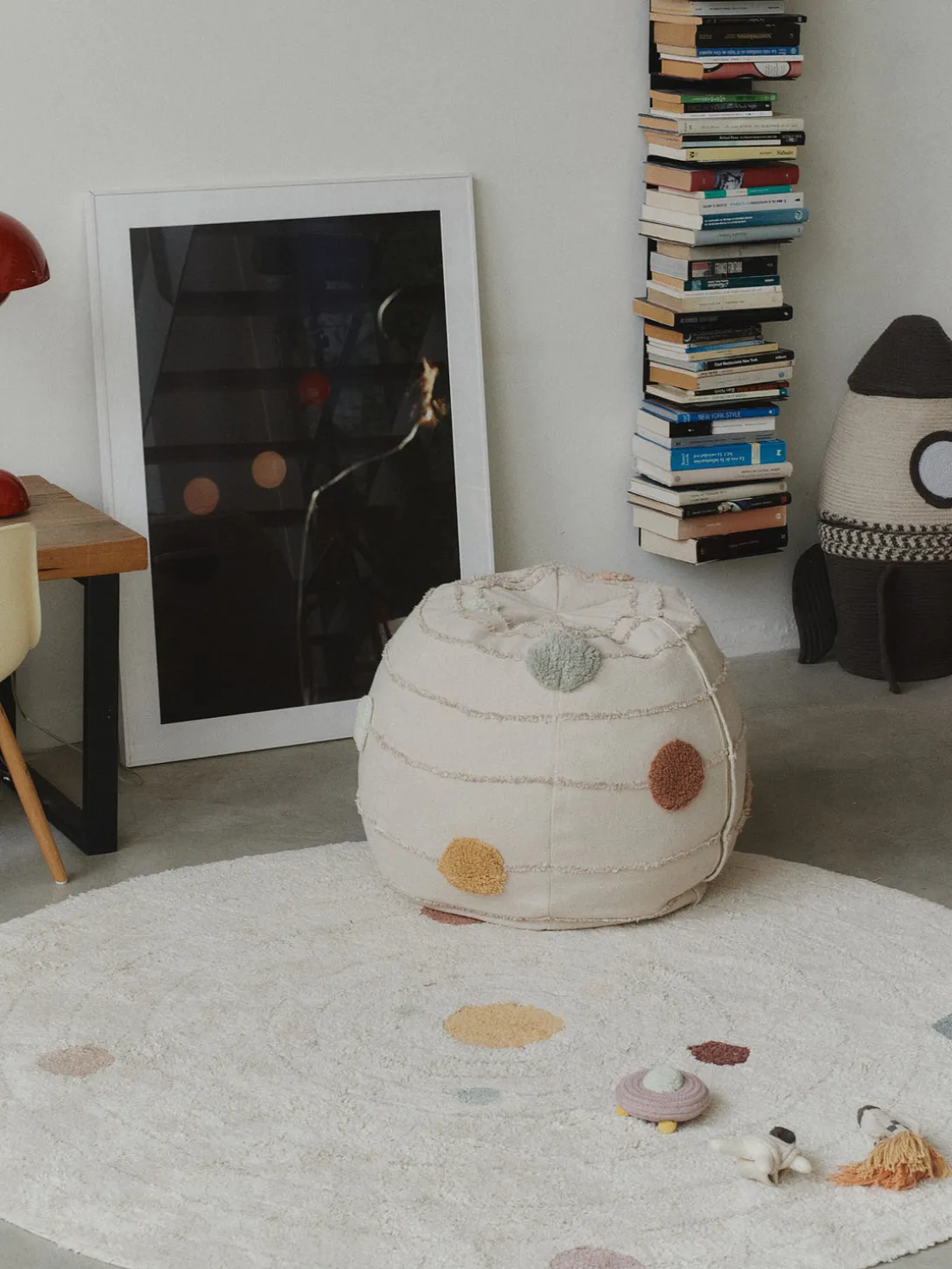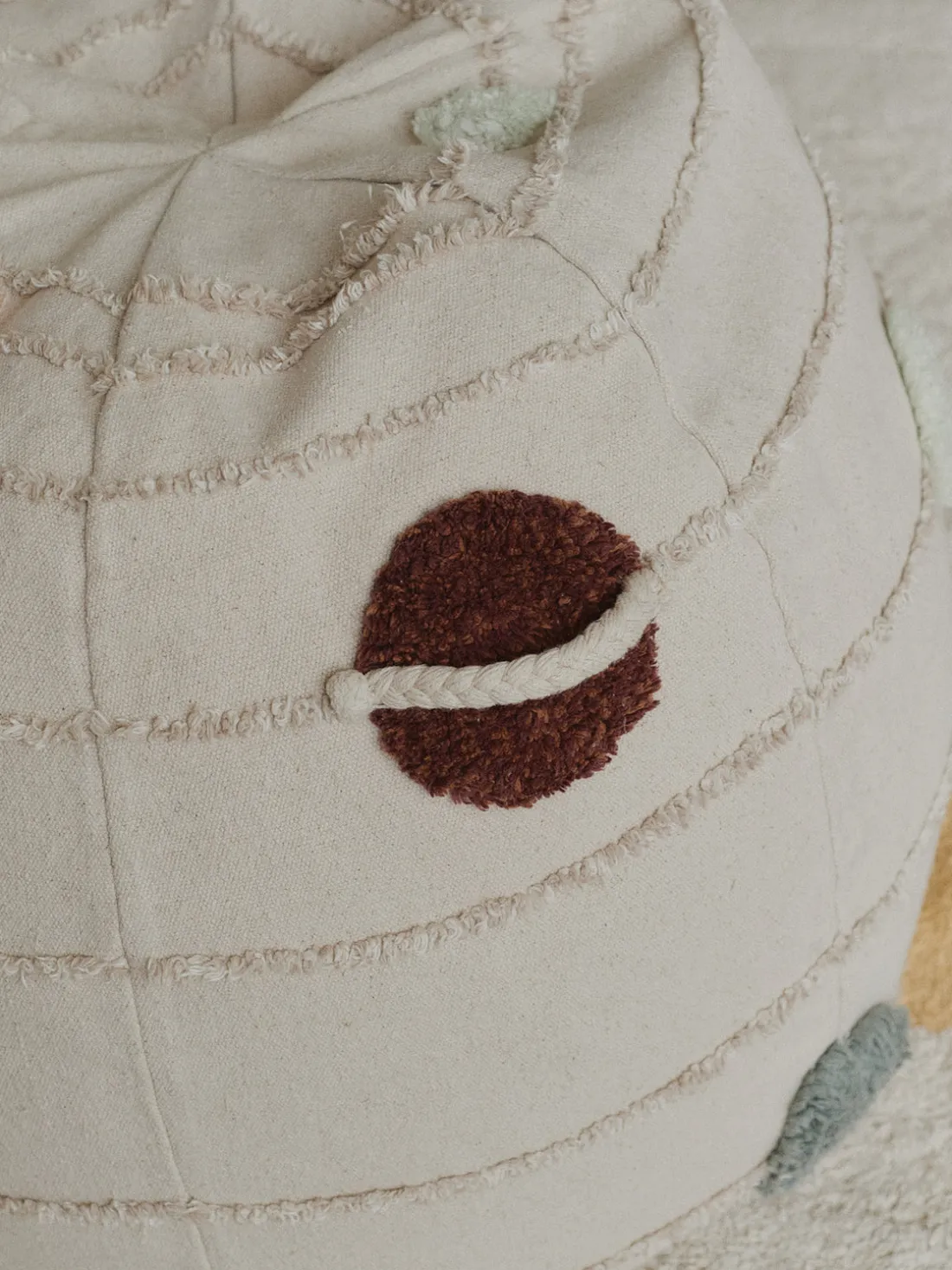 ¡Descubre la comodidad cósmica con el puf SOLAR SYSTEM! Puf redondo hecho a mano inspirado en el sistema solar que representa los planetas y sus órbitas. La funda exterior tiene una cremallera para facilitar su extracción y lavado. El puf tiene un asa trenzada que se asemeja a los anillos de Saturno, lo que facilita su transporte. ¡Transforma cualquier habitación en un acogedor rincón cósmico con el puf SOLAR SYSTEM!