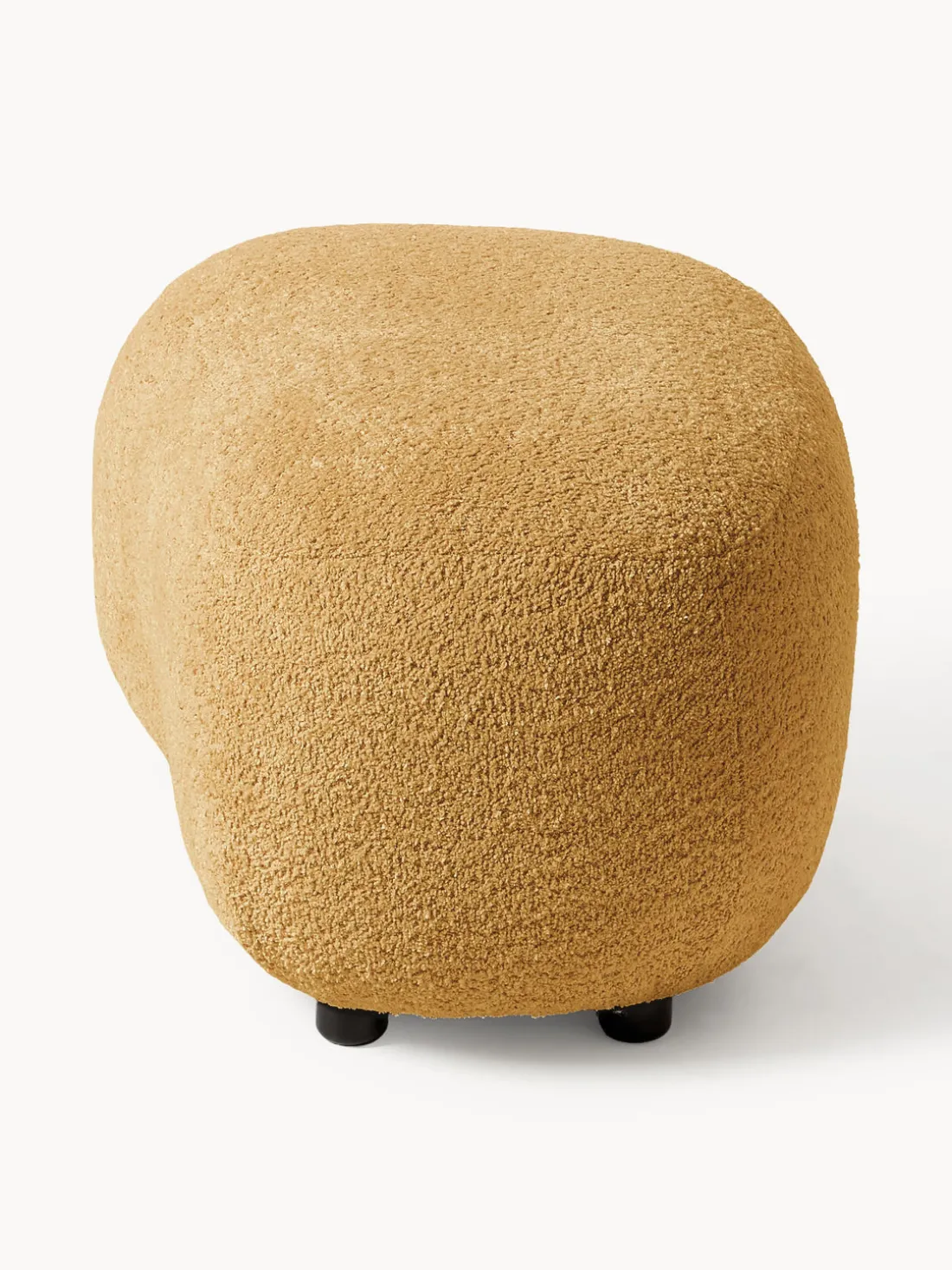 El arco está a la izquierda cuando estás frente al puf. Esto significa que este puf encaja perfectamente con el sillón ALBA con reposabrazos a la izquierda.