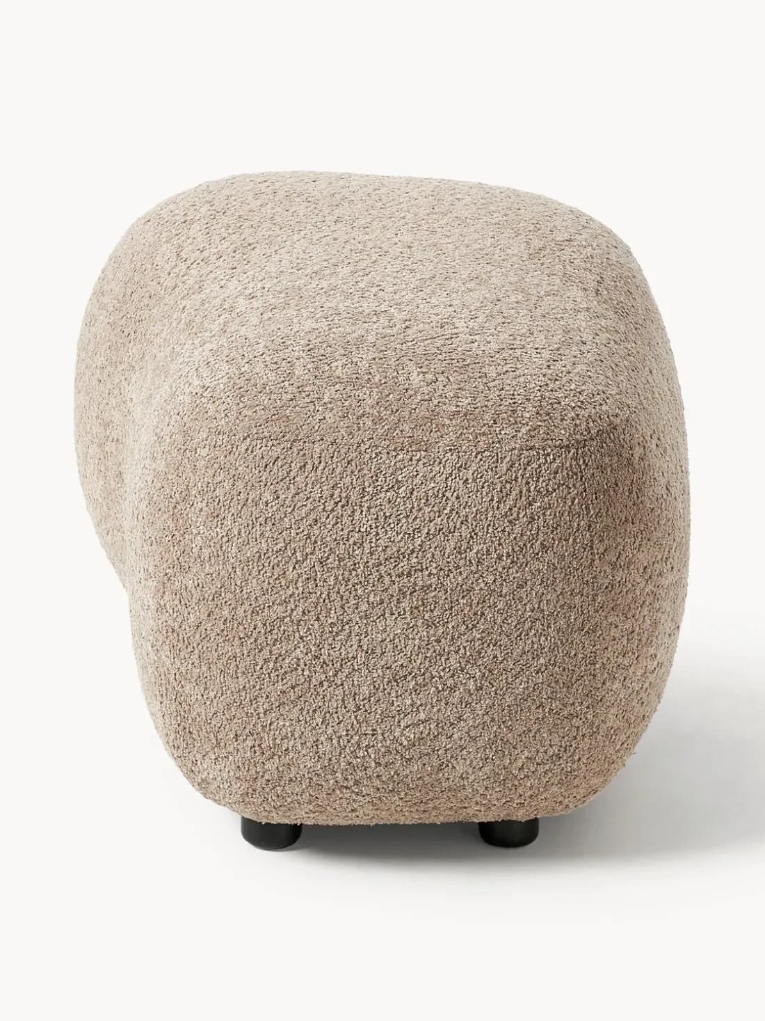 El arco está a la izquierda cuando estás frente al puf. Esto significa que este puf encaja perfectamente con el sillón ALBA con reposabrazos a la izquierda.