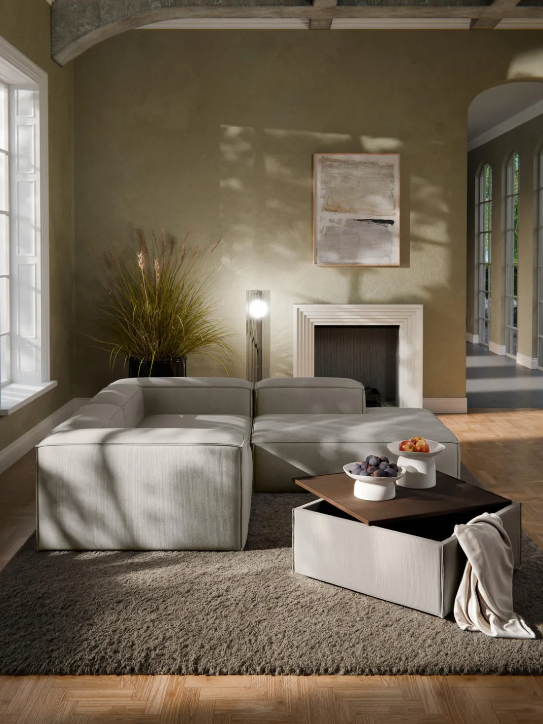 Reposapiés puf de pana con espacio de almacenamiento Lennon