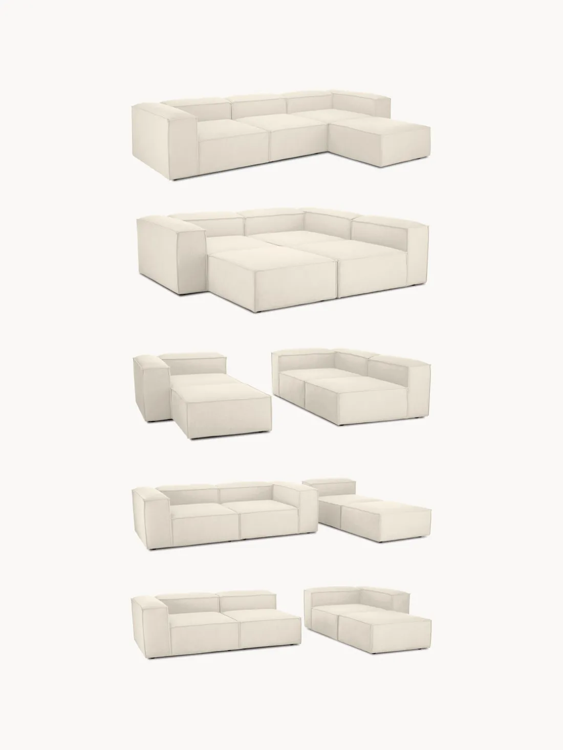 También puedes descubrir otros productos a juego en nuestra gama que se adaptan perfectamente a LENNON: la consola LANA no solo ofrece espacio de almacenamiento adicional, sino que también es un elemento decorativo que se adapta exactamente a las dimensiones de LENNON. El taburete LENNON con bandeja de madera se puede utilizar de forma flexible como mesa de centro o como elemento intermedio en el sofá, para conseguir un aspecto elegante y espacio de almacenamiento práctico. No te olvides del complemento perfecto: cojines de sofá en todos los tejidos y colores de LENNON para un look perfecto, ya sea uniforme o en un estilo mix & match.