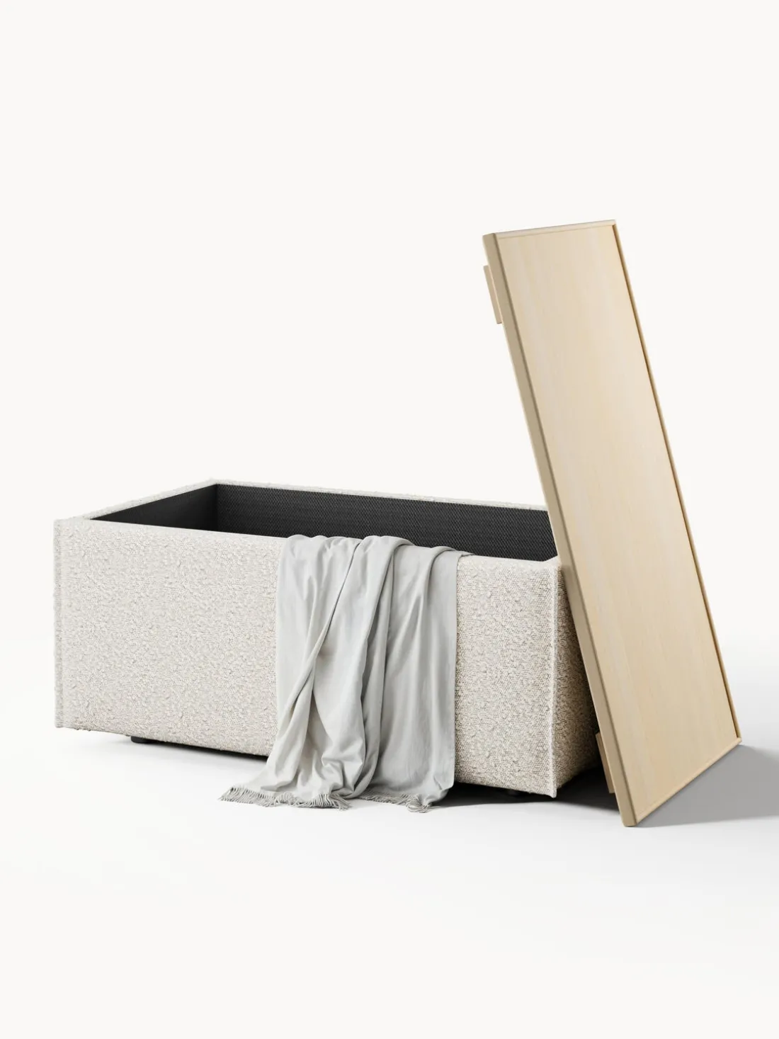 – Tapizado en tejido bouclé muy duradero y de fácil cuidado, disponible en colores diferentes
