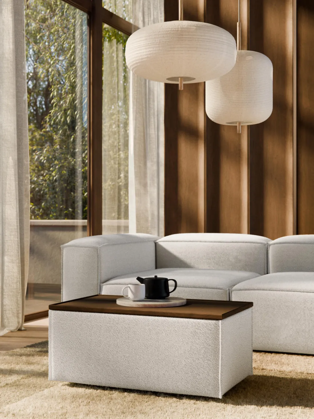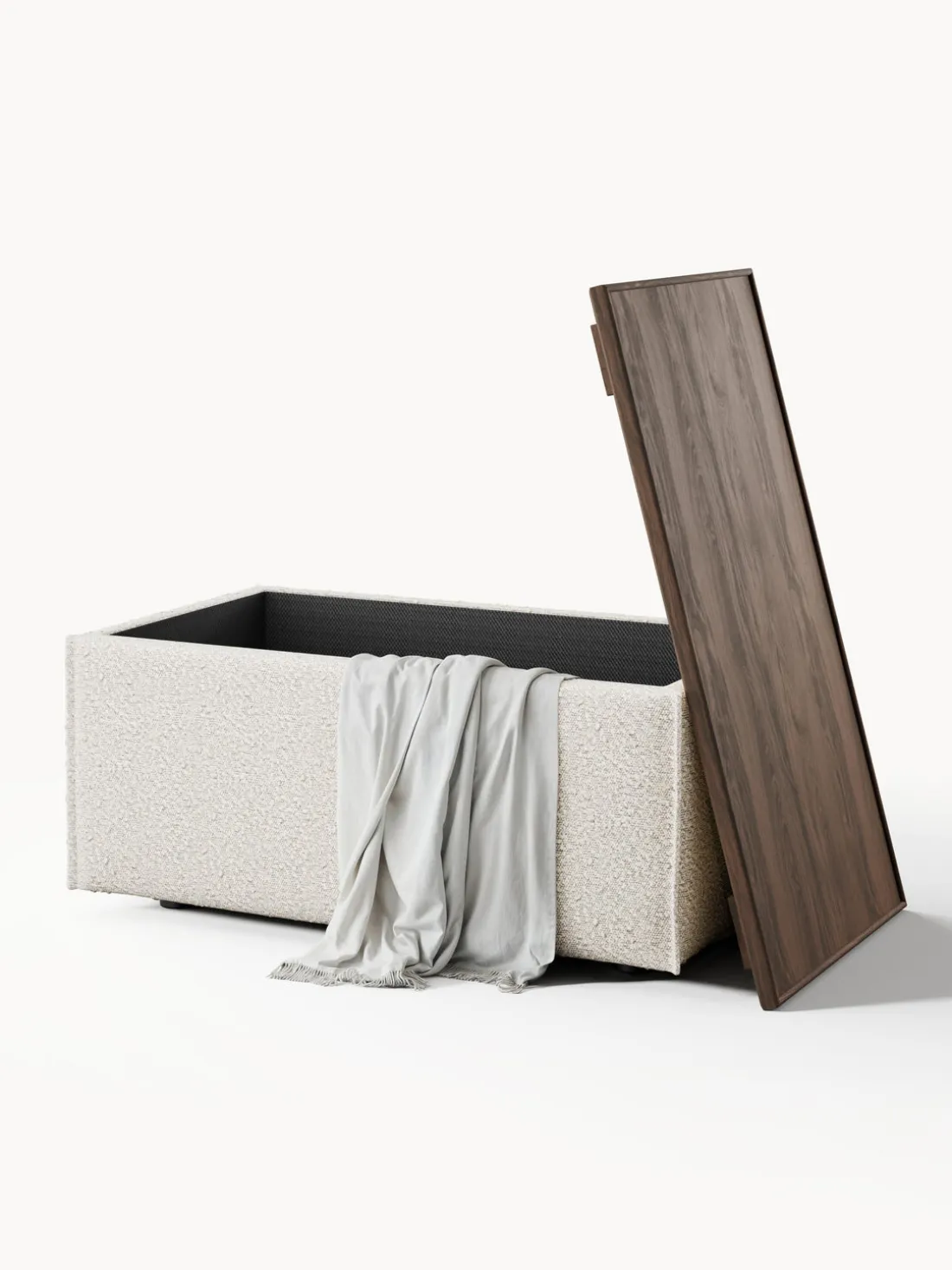 Reposapiés puf en tejido bouclé con espacio de almacenamiento Lennon
