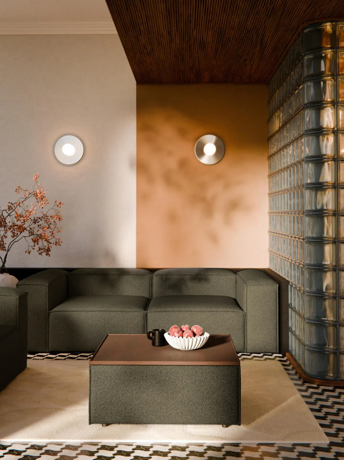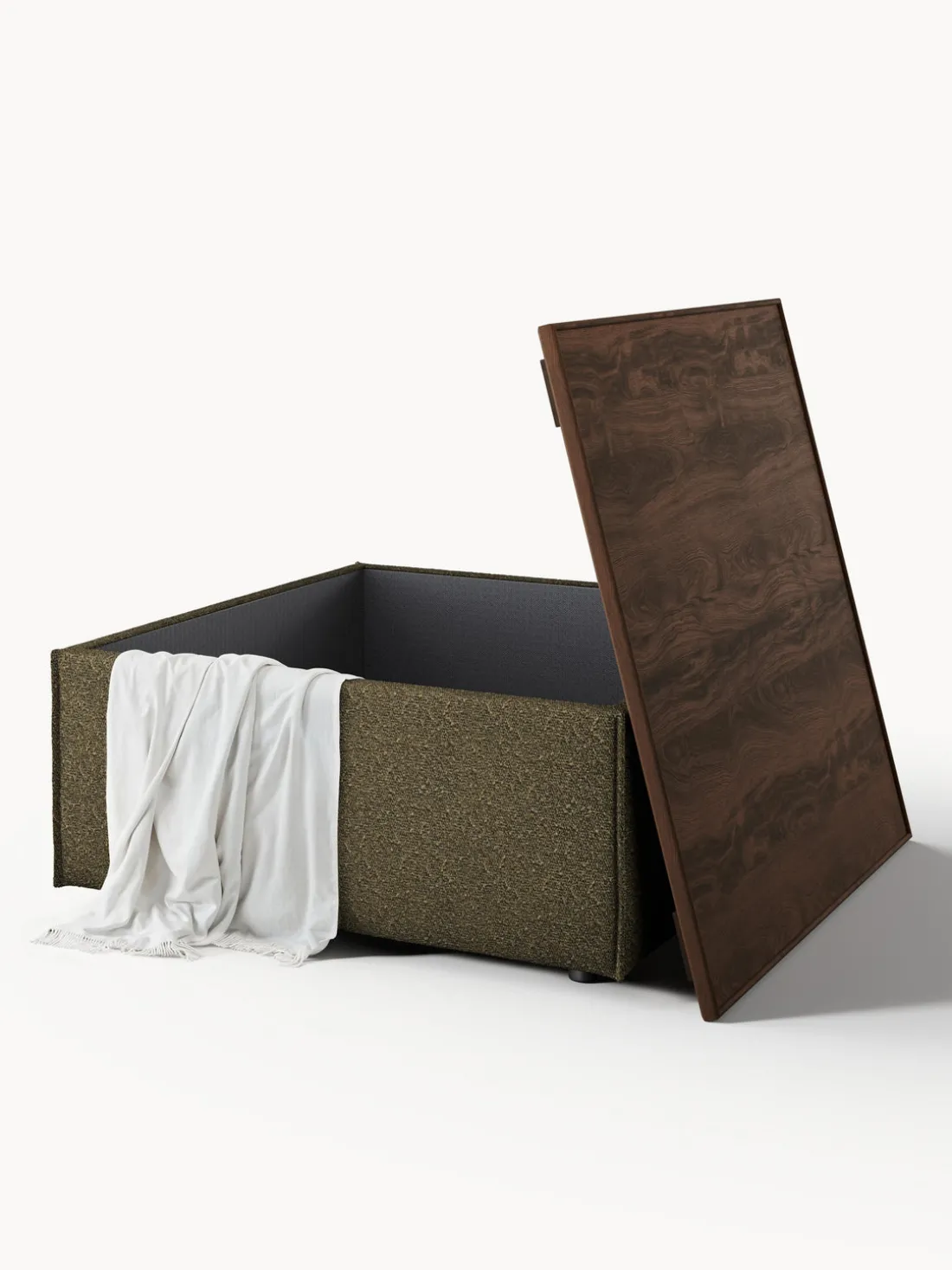 Reposapiés puf en tejido bouclé con espacio de almacenamiento Lennon
