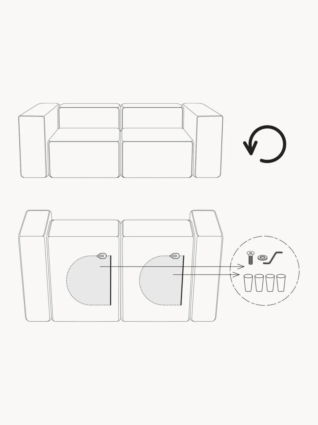 También puedes descubrir otros productos a juego en nuestra gama que se adaptan perfectamente a LENNON: la consola LANA no solo ofrece espacio de almacenamiento adicional, sino que también es un elemento decorativo que se adapta exactamente a las dimensiones de LENNON. El taburete LENNON con bandeja de madera se puede utilizar de forma flexible como mesa de centro o como elemento intermedio en el sofá, para conseguir un aspecto elegante y espacio de almacenamiento práctico. No te olvides del complemento perfecto: cojines de sofá en todos los tejidos y colores de LENNON para un look perfecto, ya sea uniforme o en un estilo mix & match.