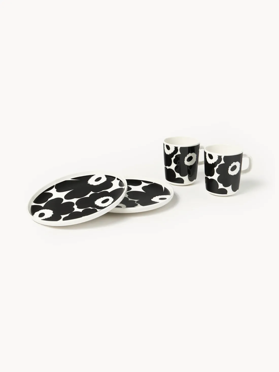 Este juego de desayuno floral de 4 piezas consta de dos platos postre y dos tazas.